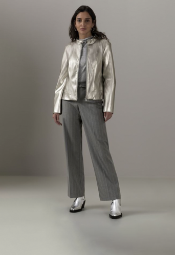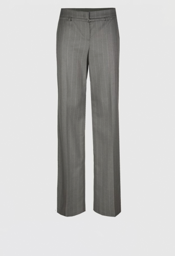 Брюки стрейч с небольшим тканевым поясом. Высококачественная смесь материалов с эластаном. С фигурным поясом и застежкой на крючок и пуговицу. Прямой, длинный крой с запрессованными складками. Длина около 82 см, ширина по низу около 50 см.