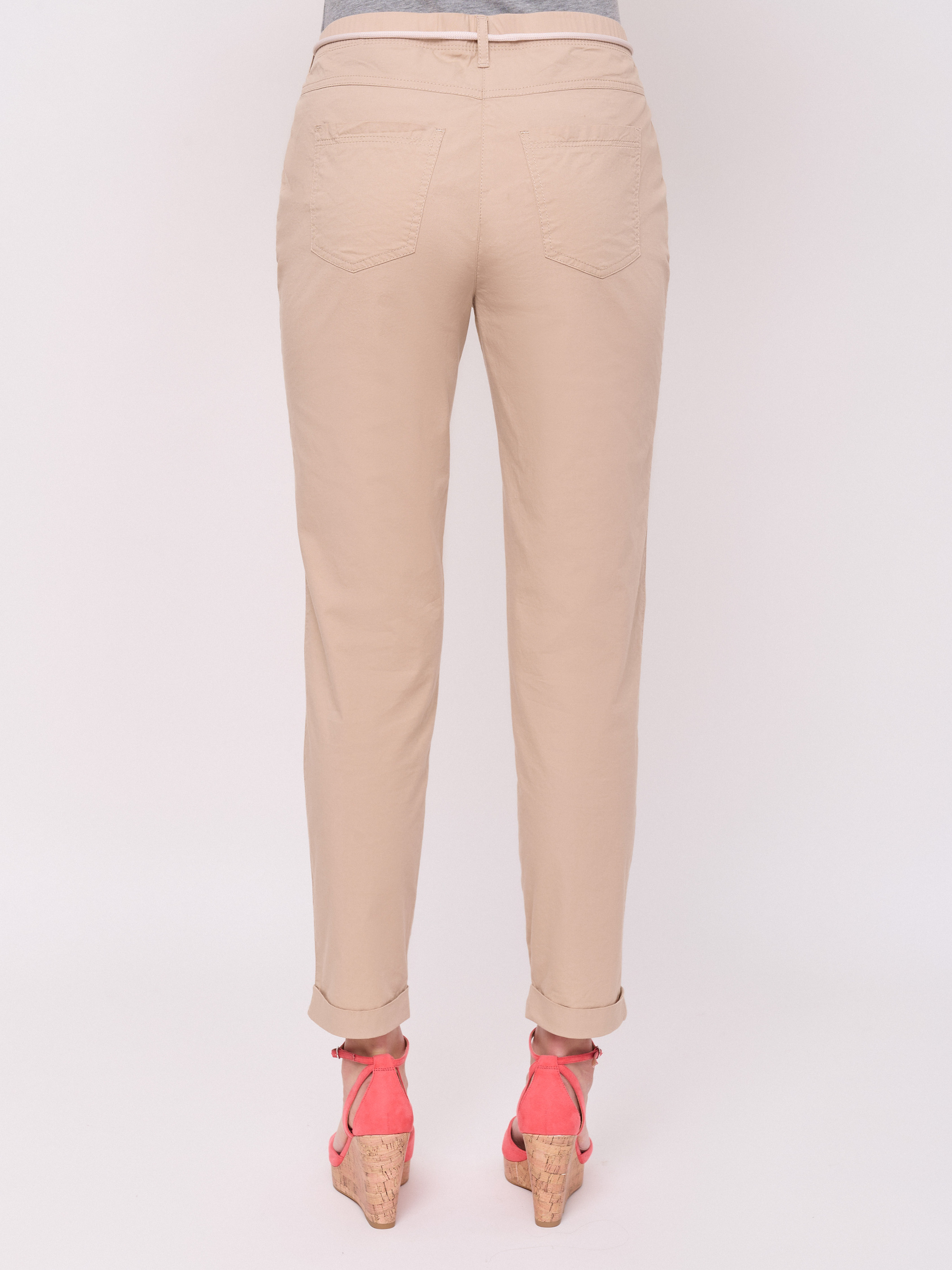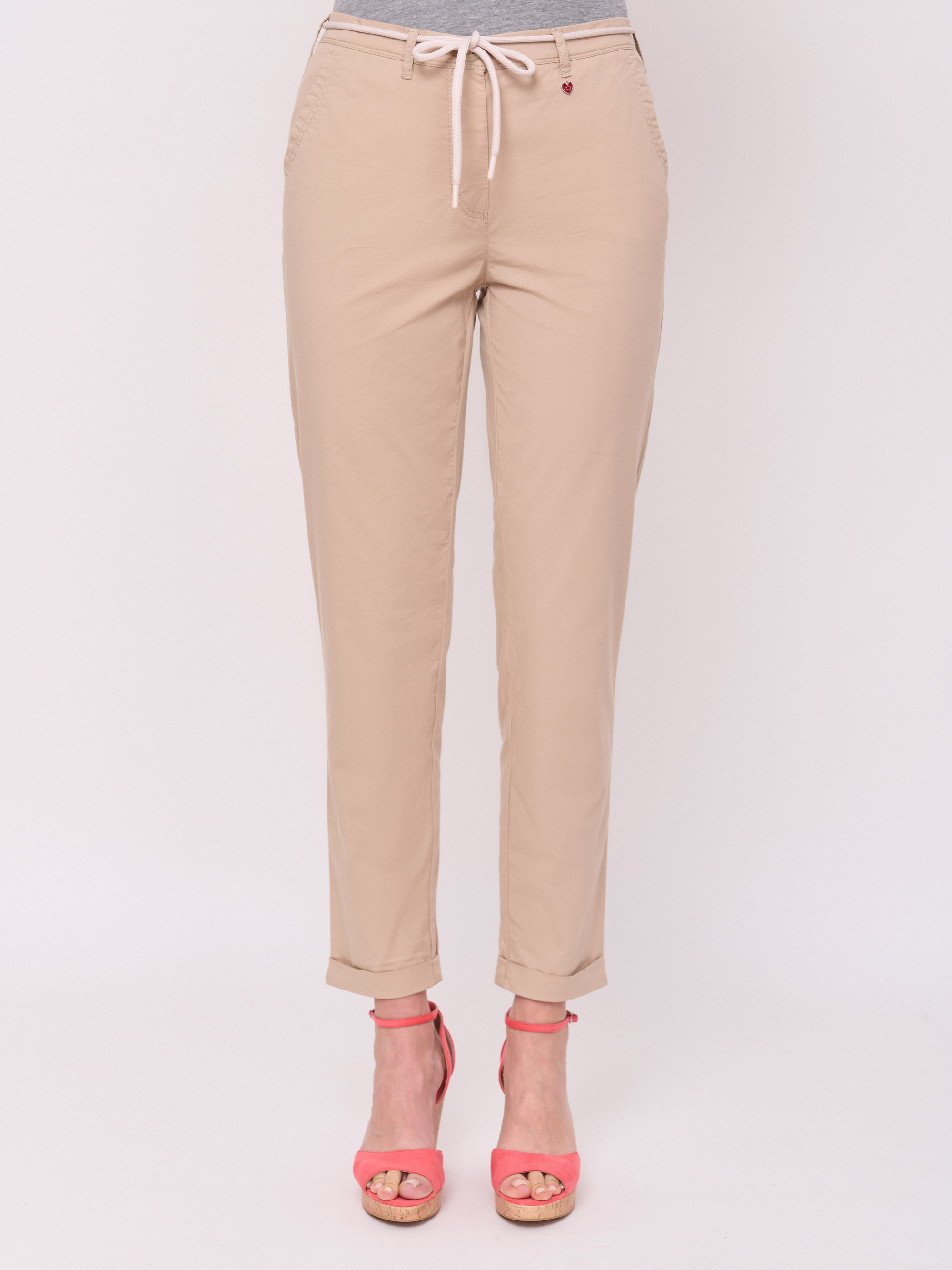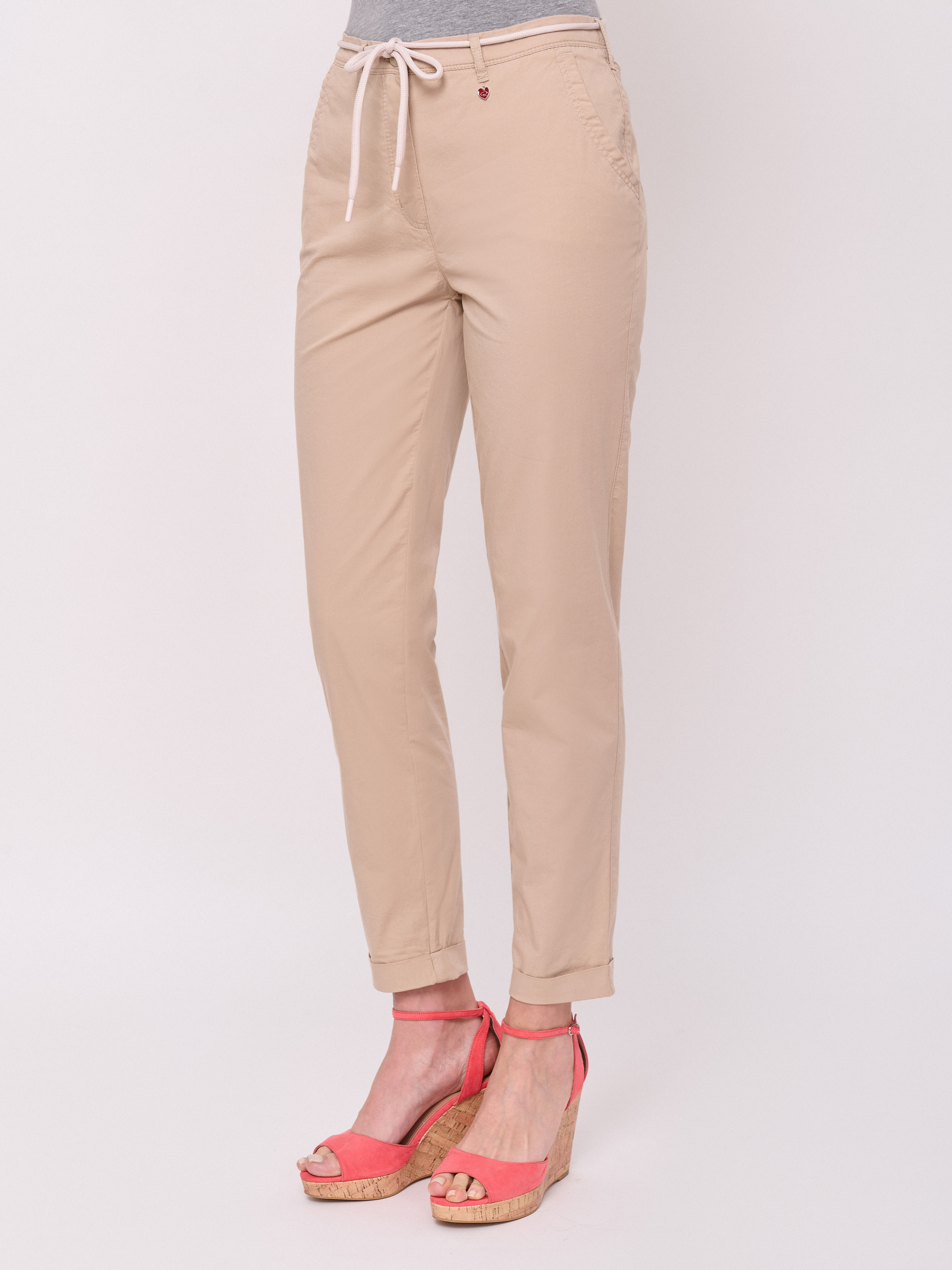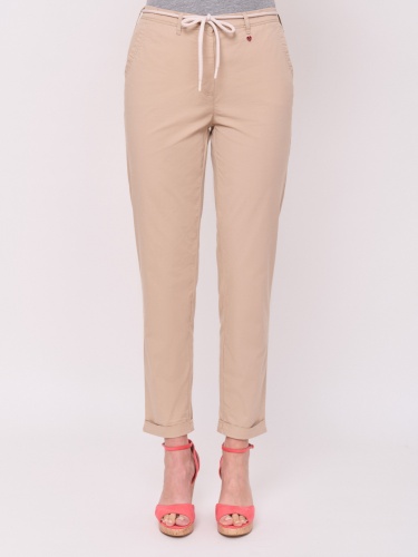 Детали: застежка молния, без рисунка, карманы косые, крой брючин зауженный, посадка средняя, пояс-шнур. Длина брючин: 71 см.