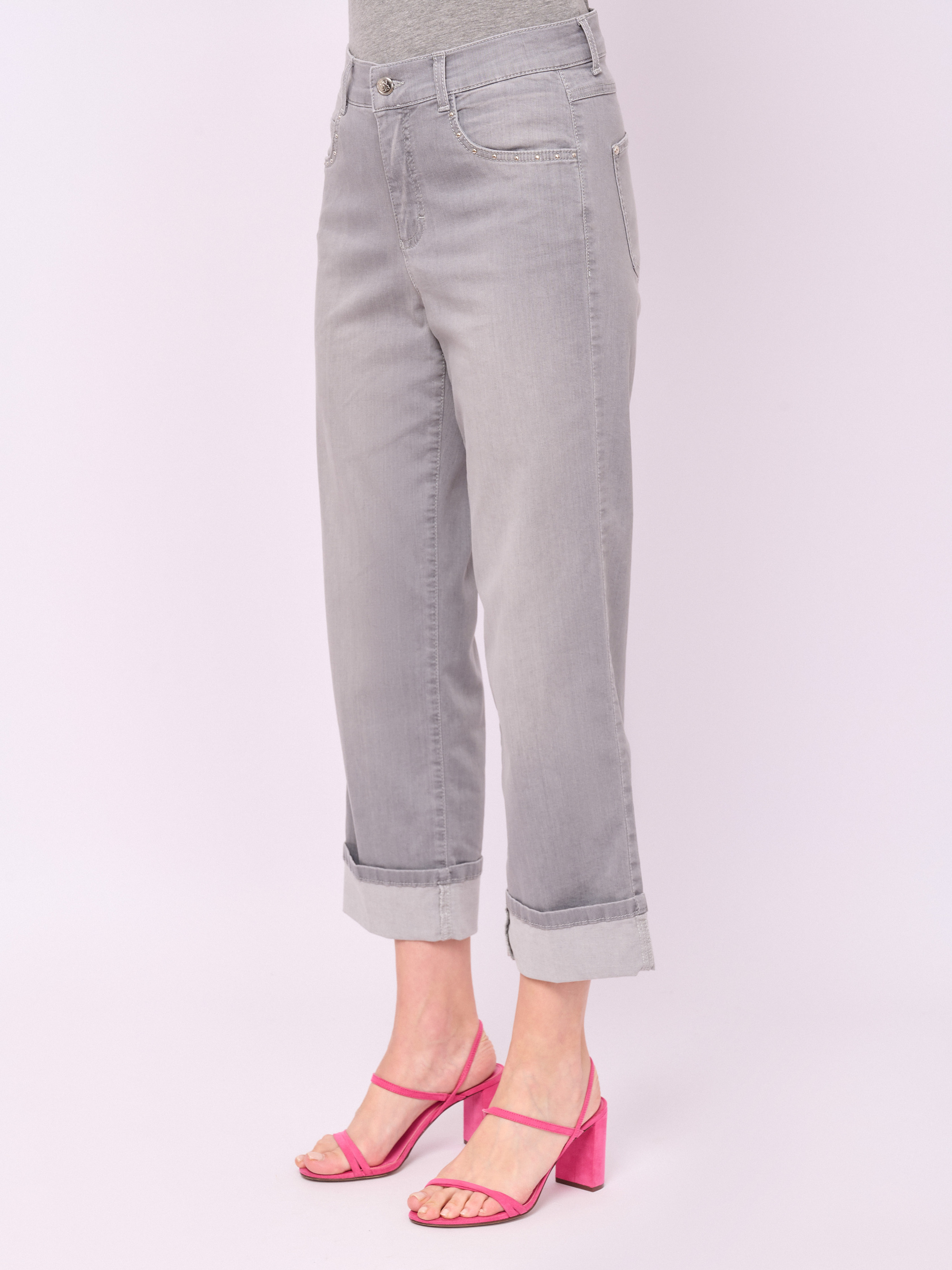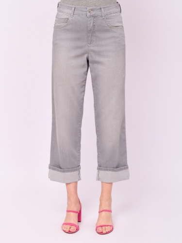 Детали: застежка молния, без рисунка, карманы с отрезным бочком, крой брючин прямой, посадка средняя, отвороты по низу брючин. Длина брючин: 64 см.