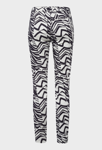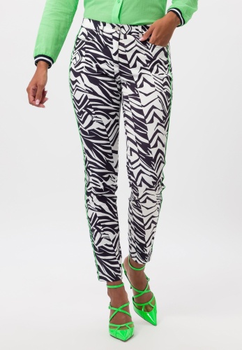 Брюки женские со сплошным узором и контрастной окантовкой по бокам. В этой модели привлекательный принт по всей поверхности дополнен контрастной окантовкой по бокам. Они добавляют красочной изюминки к эффектному узору и визуально утягивают ногу. Облегающий крой надежно облегает фигуру благодаря эластичности. Длина - 72 см.