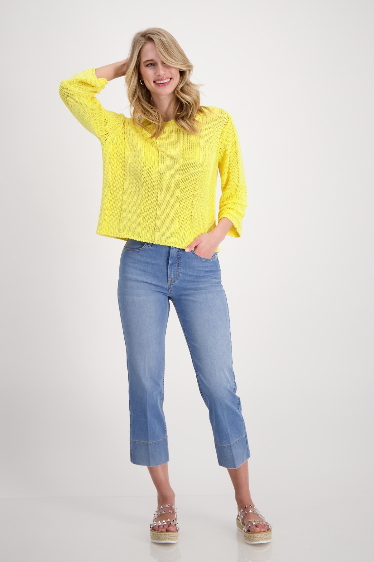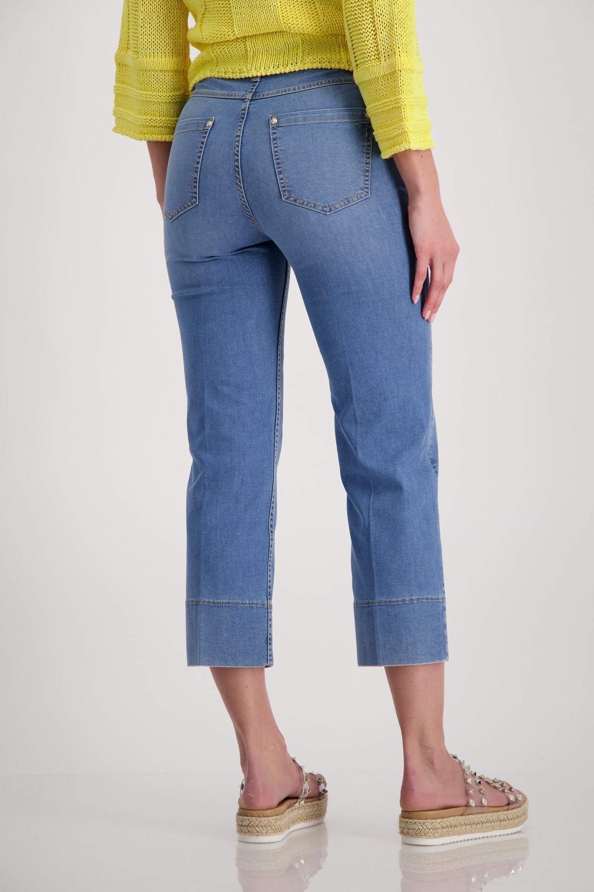 Джинсовые брюки Bootcut 3/4 из высококачественного эластичного хлопка создают удобный и стильный вид. Нормальная высота талии. Боковые карманы. Накладные задние карманы. Широкая кромка внизу штанин. Длина внутренней штанины для всех размеров составляет 64 см.