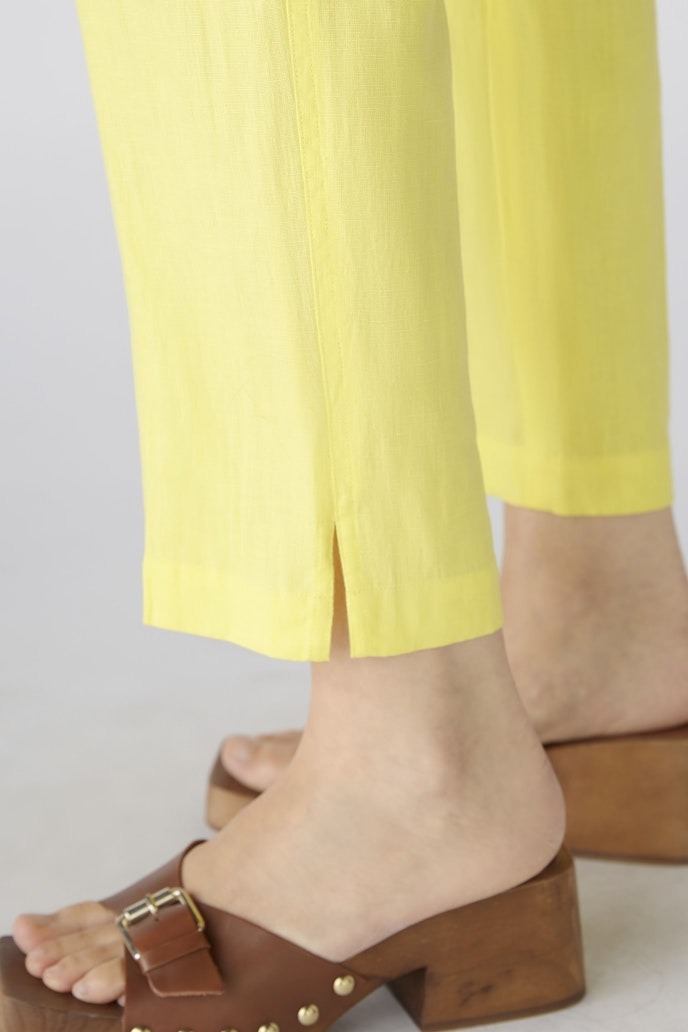 Идеальные летние брюки - 100% лен укороченного кроя, воздушные, удобные и всегда шикарные. Средняя талия, прямой крой, укороченный. Специальная обработка пояса, чистая спереди, удобная сзади с эластичным поясом. Боковые карманы, ложные прорезные карманы сзади. Боковые разрезы на подоле. Длина для размера 42: 72 см.