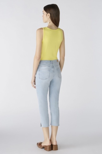 Отличные базовые джинсы длиной капри с разрезами по бокам — отлично сочетаются со всеми верхами. Эластичный, легкий деним, легко стирается. Прямой, узкий крой, укороченная длина. Типичное решение джинсового пояса с петлями для ремня. Классический фасон с пятью карманами. Боковые разрезы на концах ног. Длина для размера 42: 60 см.