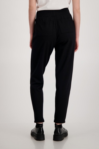 На сайте указаны российские размеры. Спортивные, элегантные и женственные: джоггеры от monari. Брюки выполнены из струящейся смесовой вискозы и обещают удобную посадку не только благодаря эластичности, но и благодаря повседневному крою с нормальной посадкой. Эластичный ребристый пояс с кулиской, люверсами и завязками, а также вставки из ткани в тон с оверлочными швами по бокам и боковые карманы стильно украшают модель. Тиснение тон в тон в виде объемной надписи определяет дизайн правой штанины и делает каждый ваш наряд изюминкой. Рост модели 178 см.
