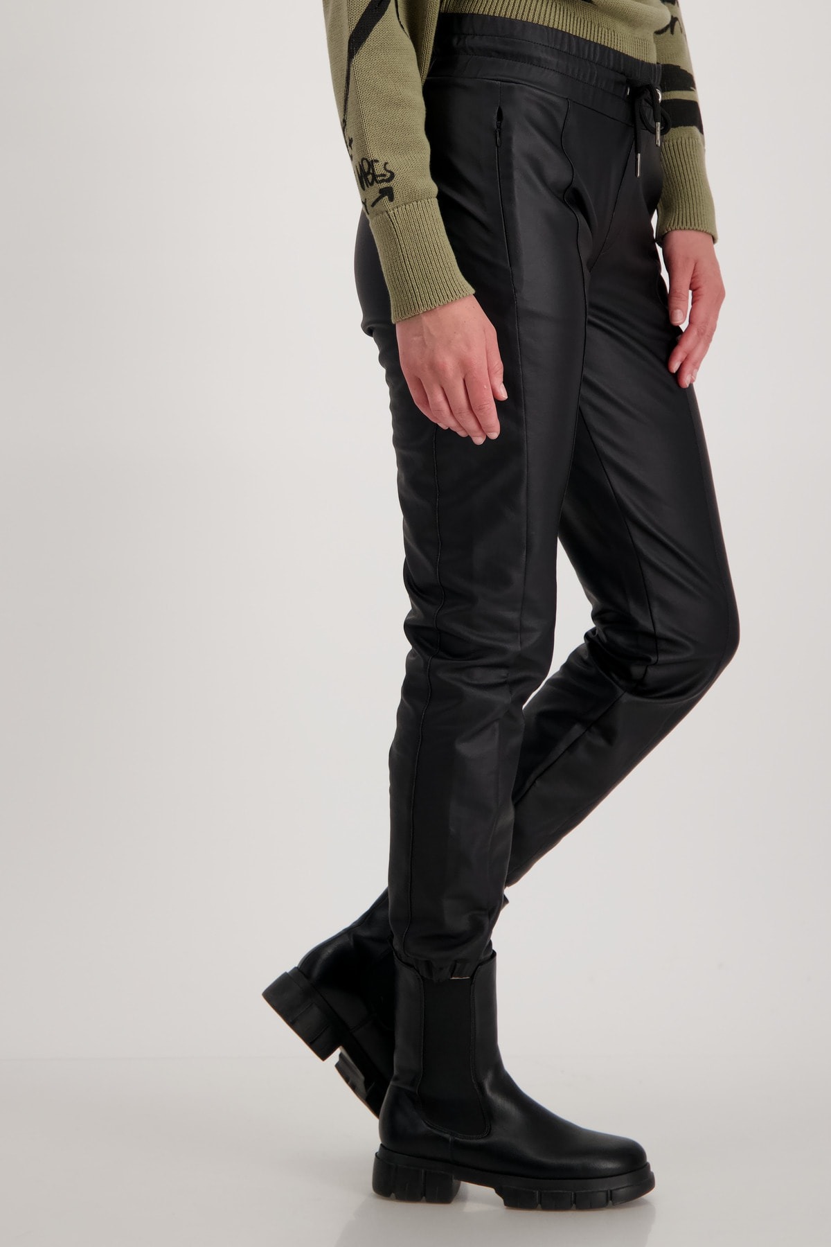 На сайте указны российские размеры. Джоггеры monari из кожи с галстуком. Модель имеет особую изюминку за счет продольных разделительных швов спереди и сзади. Эластичный пояс с петлями для ремня, кулиской с проушинами и завязками для завязывания, а боковые швы с незаметной молнией и два ложных прорезных кармана на спине завершают образ. Рост модели 179 см Длина по внутреннему шву 74 см.