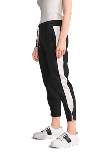 Модные брюки в стиле спортивных штанов. Полоски подчеркивают стройные линии и свободный крой по щиколотку. Мягкая, но прочная ткань и эластичный пояс с кулиской обеспечивают комфорт в любое время.
