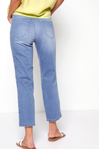 Укороченные джинсы прямого кроя – универсальный вариант низа, великолепно сочетающийся с любым верхом. Комфортная средняя посадка, передние карманы, накладные карманы сзади.