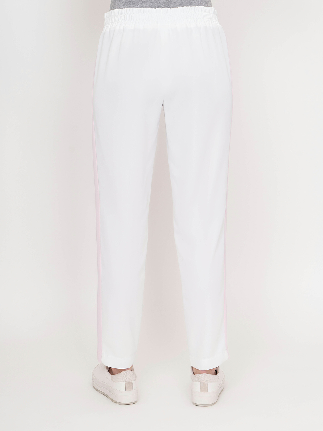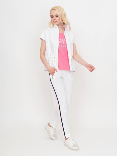 Стильные спортивные брюки. Прямой крой, средняя посадка, эластичная лента с кулиской на поясе, прорезные карманы на молниях, контрастные лампасы по бокам. Эта модель - отличный выбор для прогулок и занятий спортом.