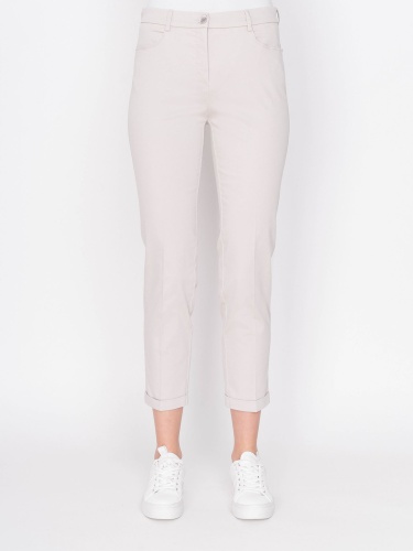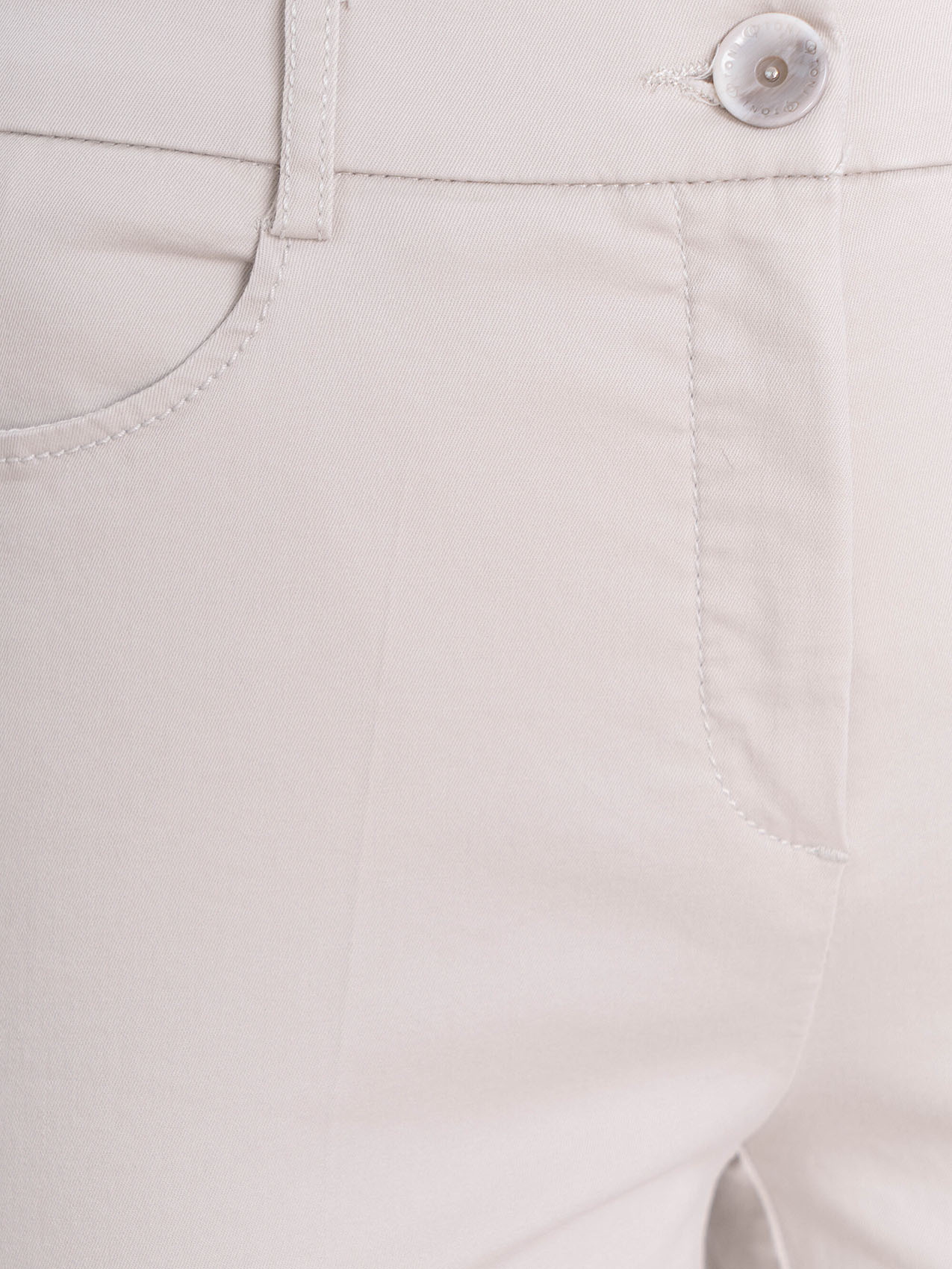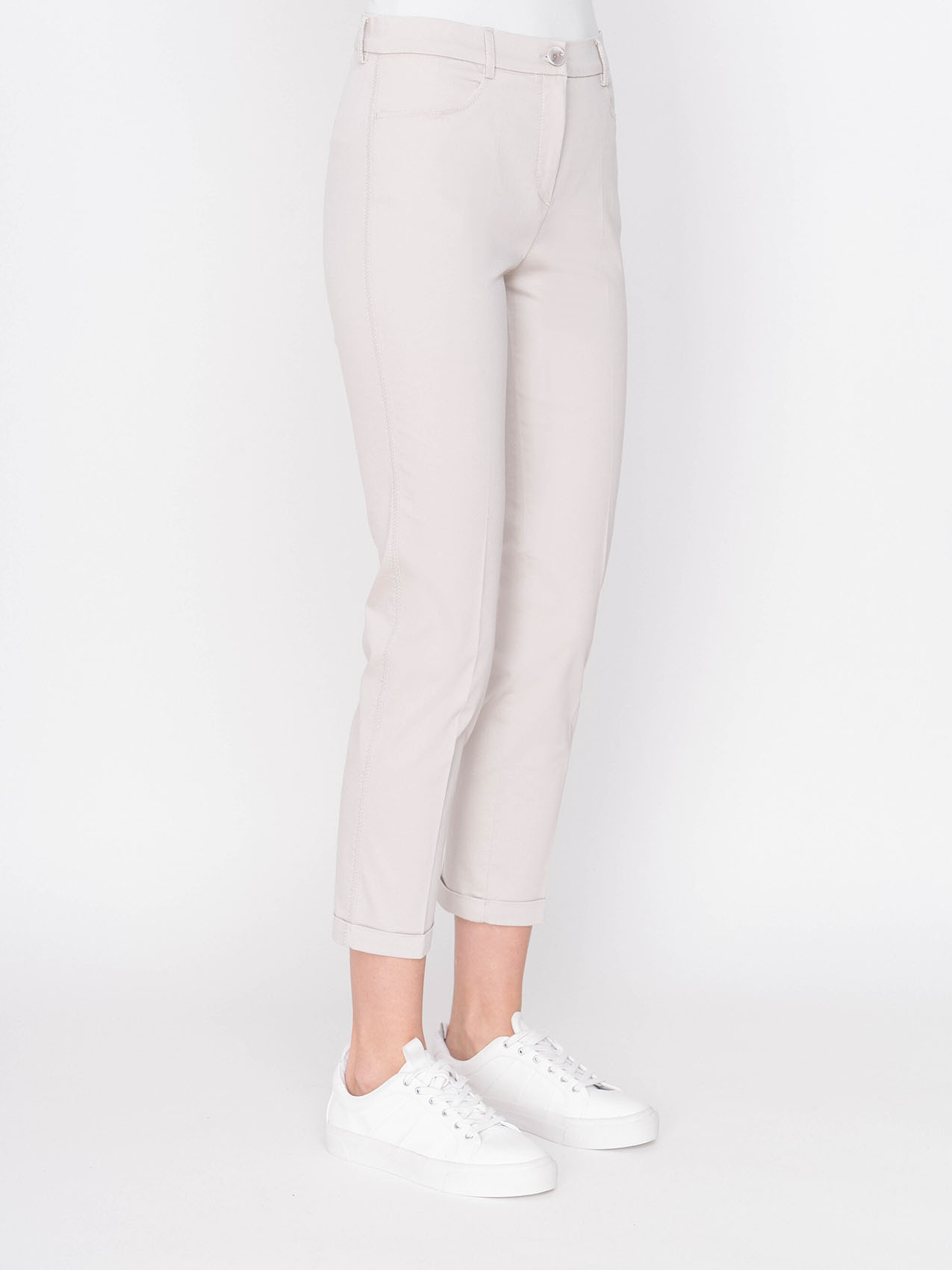 Укороченные брюки с карманами. Светлый цвет, идеально подходящий для сезона весна-лето. Эта модель отлично смотрится как с классическими туфлями, так и со спортивной обувью.