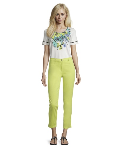 Однотонные брюки - универсальная модель! Брюки прямого кроя, средней посадки. Укороченная длина брюк позволяет подчеркнуть модную обувь. Материал из хлопковой смеси приятен к телу и обеспечивает комфорт в ношении. Эти брюки позволяют создать множество стильных образов с различными вариантами верха и обуви.