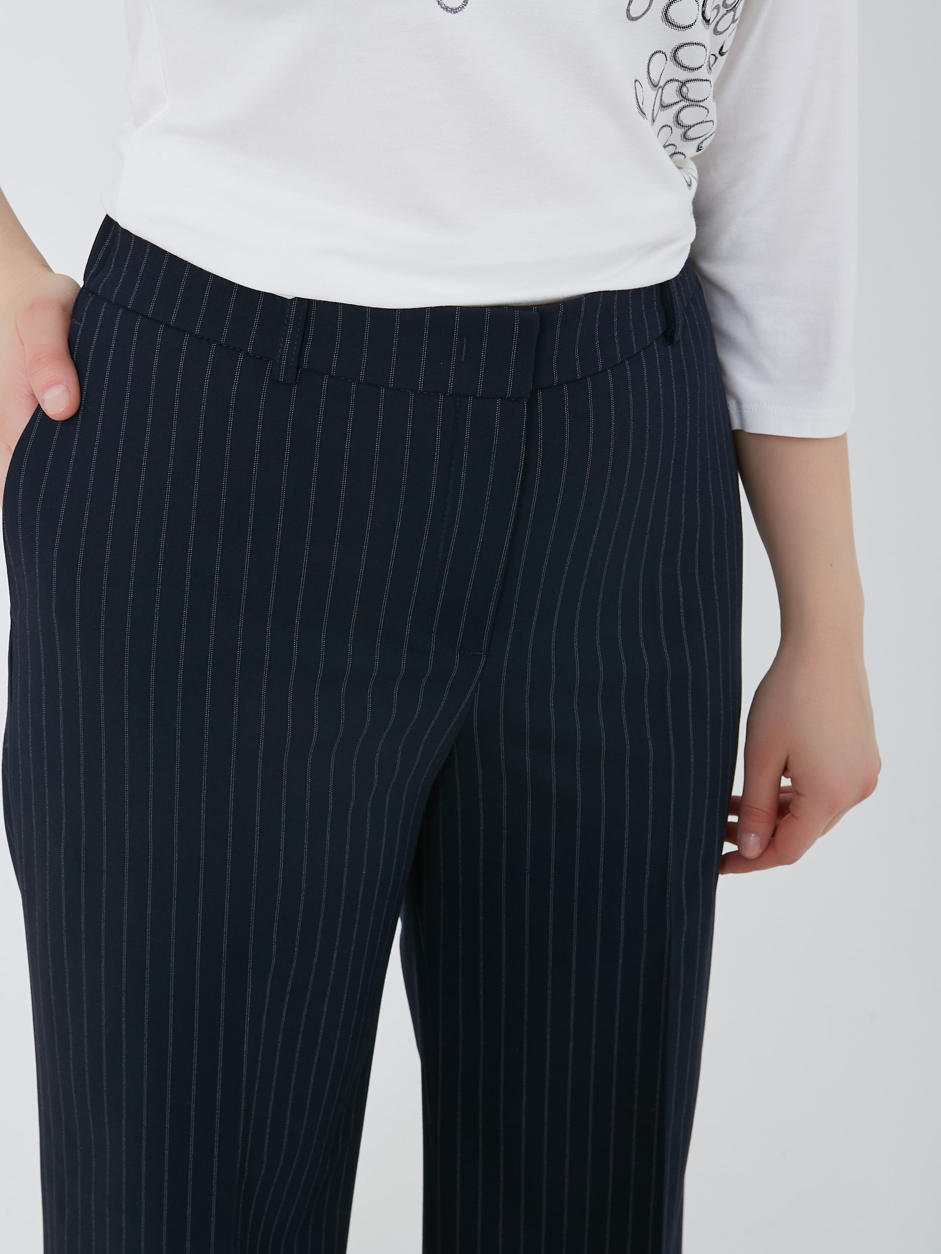 Прямые брюки тёмно-синиего цвета с пунктирной полоской "Страйп". Осень-Зима'25/26. Капсула "Лиловый шар"