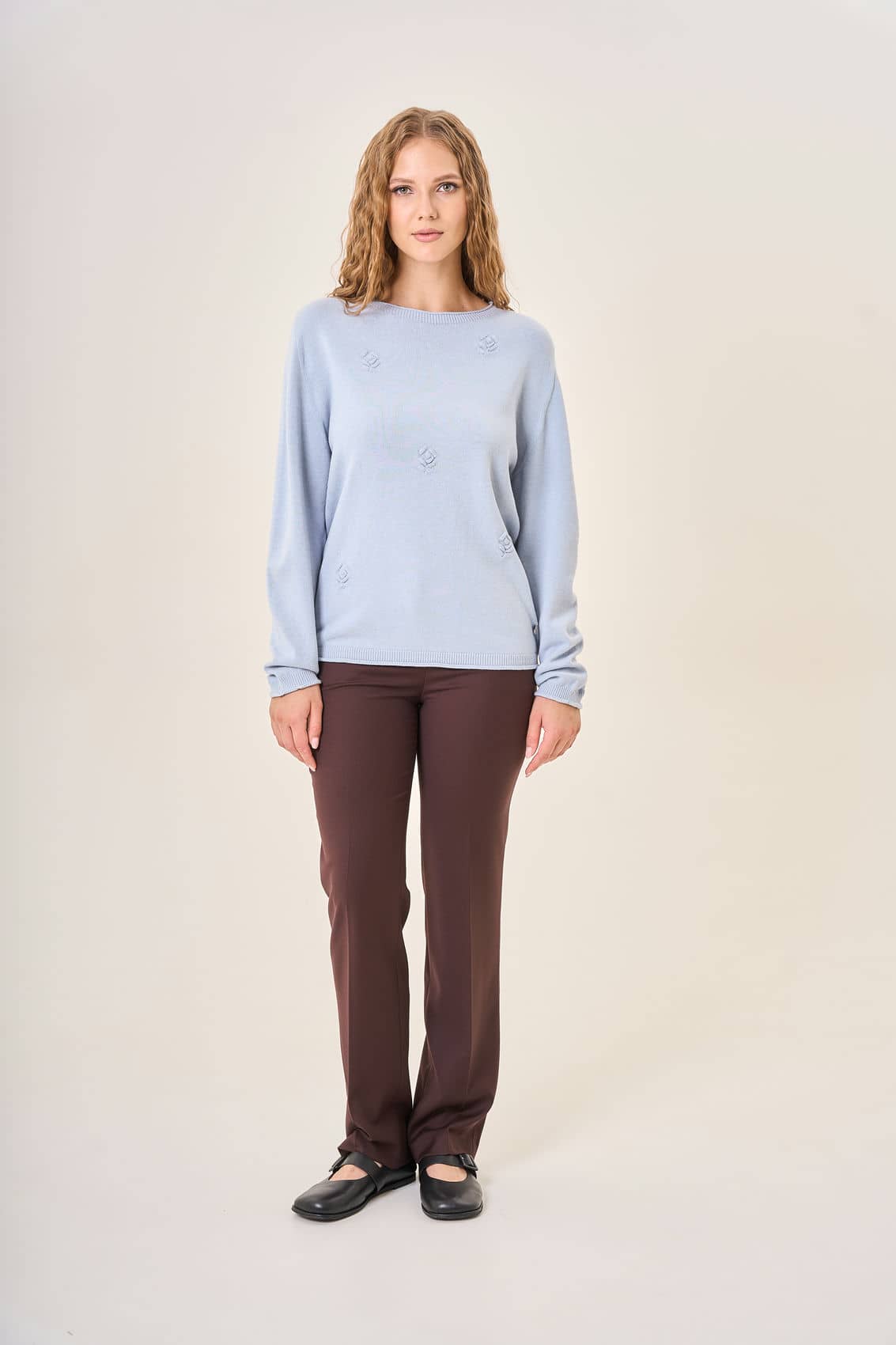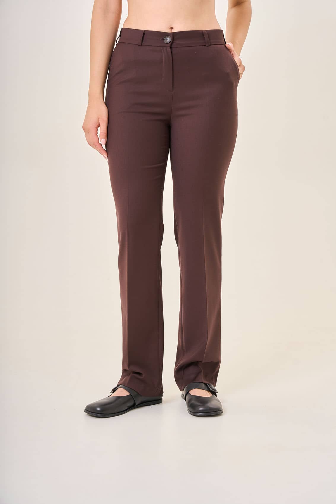 Брюки классического кроя. Высокая посадка талии обеспечивает максимальный комфорт и поддержку, подчеркивая тонкость фигуры. Прямая штанина создает лаконичный и элегантный силуэт, подходящий для любых ситуаций. Удобная застежка на молнию и пуговицу добавляют практичности и эстетики внешнему виду. Эти брюки отлично подходят для женщин всех типов фигур, визуально вытягивая силуэт и подчеркивая природную красоту. Осень-Зима'25/26. Капсула "Вино из одуванчиков"