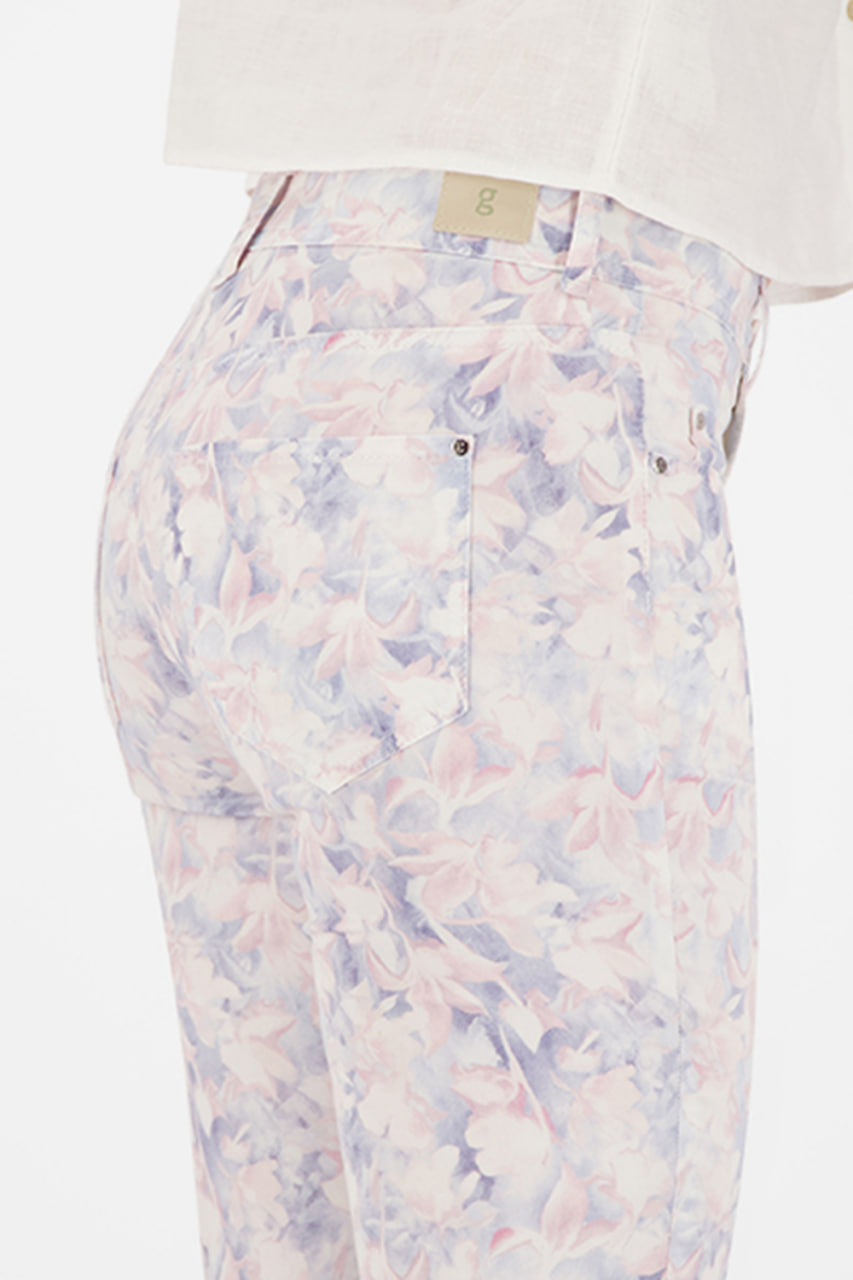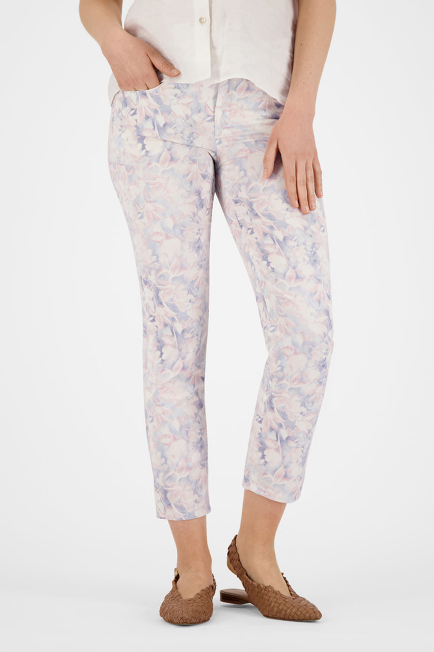 Зауженные брюки с пятью карманами, стильным принтом и укороченным кроем. Стильные и комфортные — идеальны для летних образов.