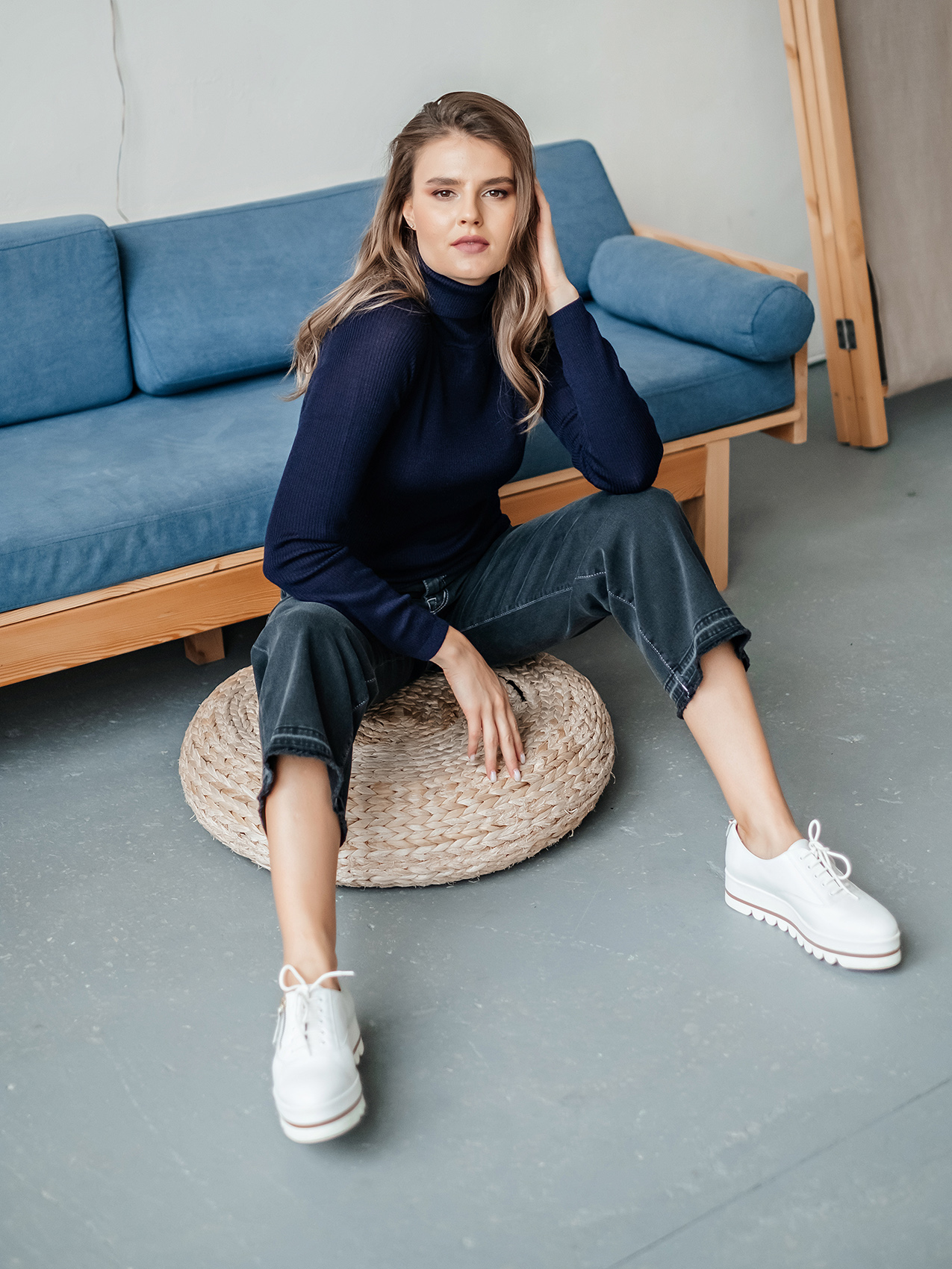 На сайте указаны российские размеры Ткань: смесовая ткань средней плотности. В составе: 45% акрил, 32% тенсель, 23% шерсть. Крой: базовый однотонный джемпер приталенного силуэта в мелкий рубчик. Модель, напоминающая привычную водолазку, выделяется длинным воротом, который защищает от холода и ветра. Универсальная модель с шерстью в составе идеальный вариант для зимы и межсезонья. Джемпер представлен в трех стильных оттенках – сером, бежевом и темно-синем. Отделка: ткань в мелкий рубчик прекрасна в своей простоте. Базовый компаньон для джинсов, брюк, джемперов, сарафанов, юбок и рубашек.