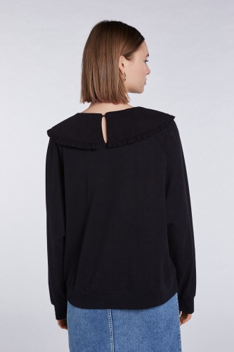 Повседневная толстовка оверсайз с эффектным воротником и рукавами реглан для стильного образа. Сзади разрез и пуговицы. Материал из органического хлопка высокого качества. Длина 42 российского размера: 60 см.