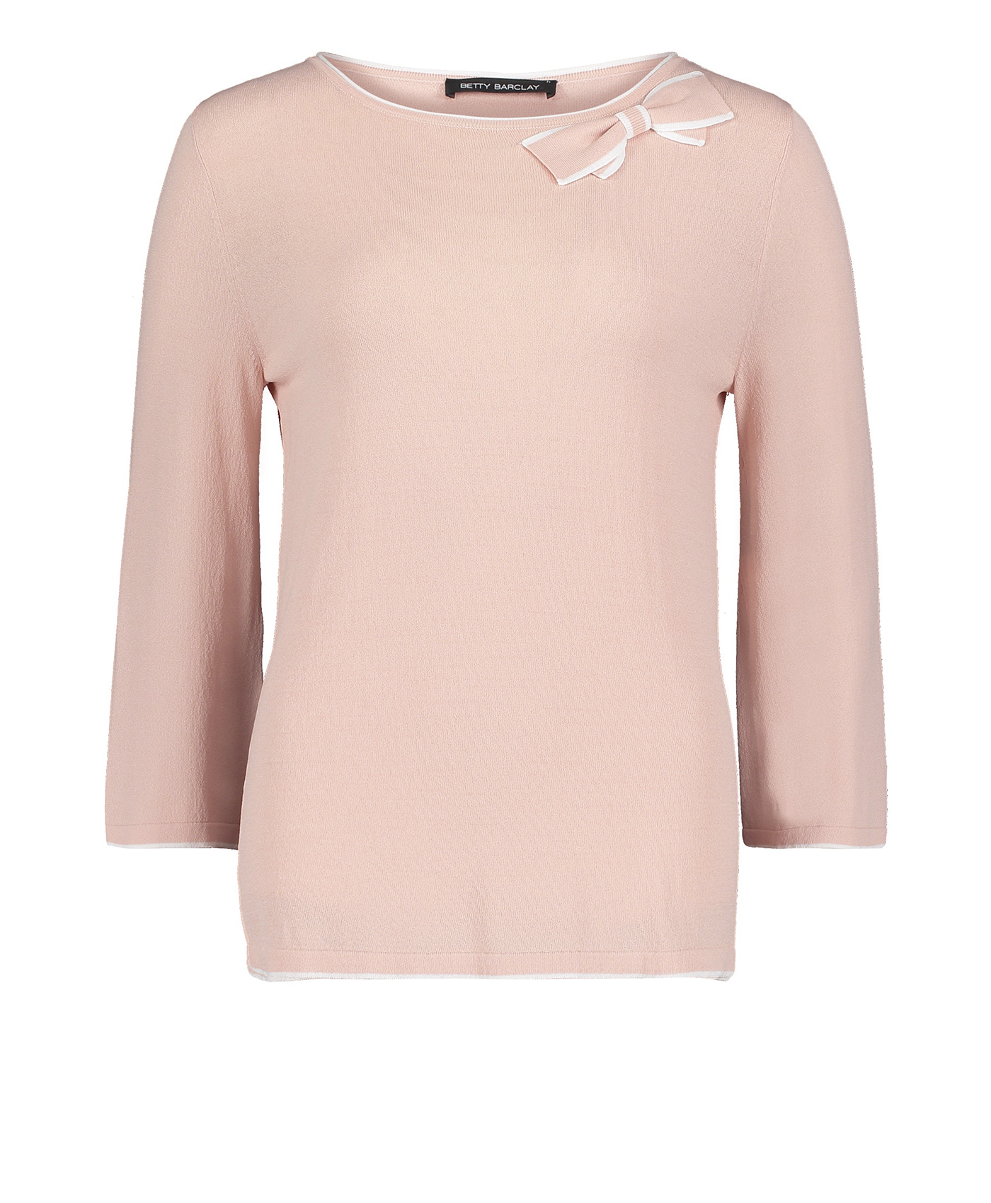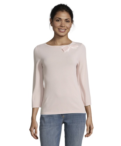 Однотонный джемпер - современная классика! Слегка приталенный силуэт джемпера подчеркивает достоинства фигуры. Вырез горловины "лодочка", рукава 3/4. Элегантная деталь дизайна - бант в области горловины. Материал из вискозной смеси приятен к телу и обеспечивает комфорт. Этот универсальный джемпер прекрасно смотрится как с брюками, так и с юбкой.
