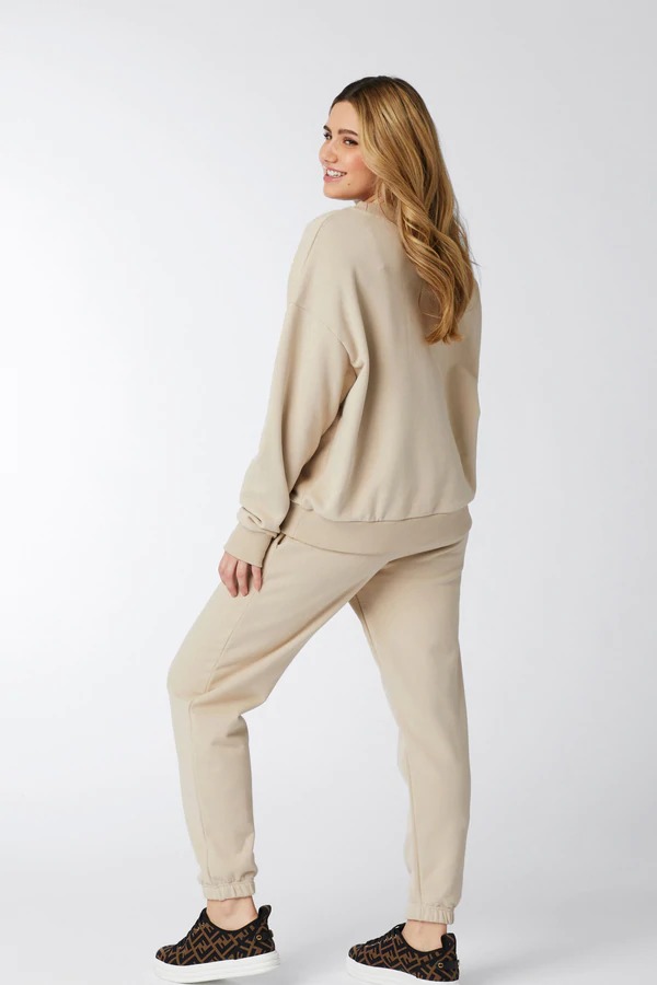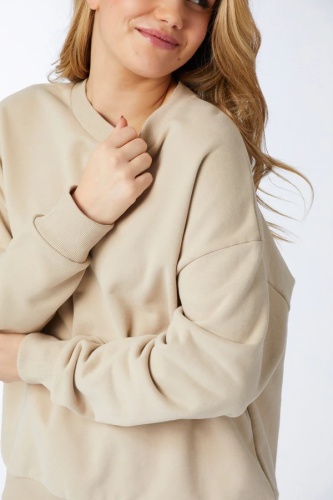 Джемпер свободного кроя из натурального хлопка. Спущенные плечи подчеркивают непринужденную посадку. Трикотажные манжеты в рубчик придают фигуре форму.