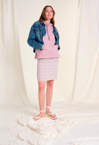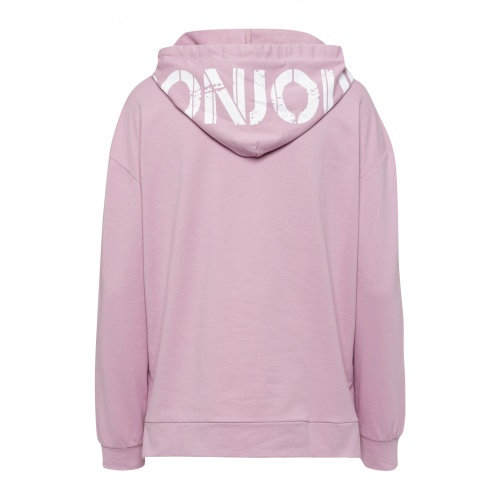 Толстовка свободной формы. Карман-кенгуру спереди. Капюшон с надписью "BONJOUR" на спине. Длинные рукава с манжетами. Длина в размере 42 = 64см