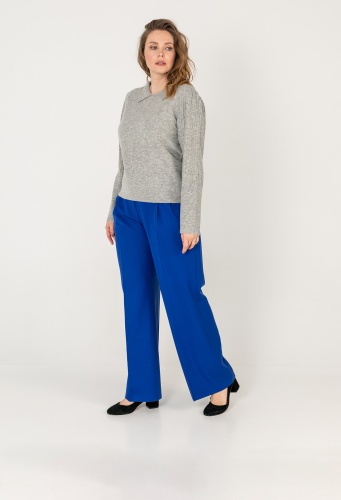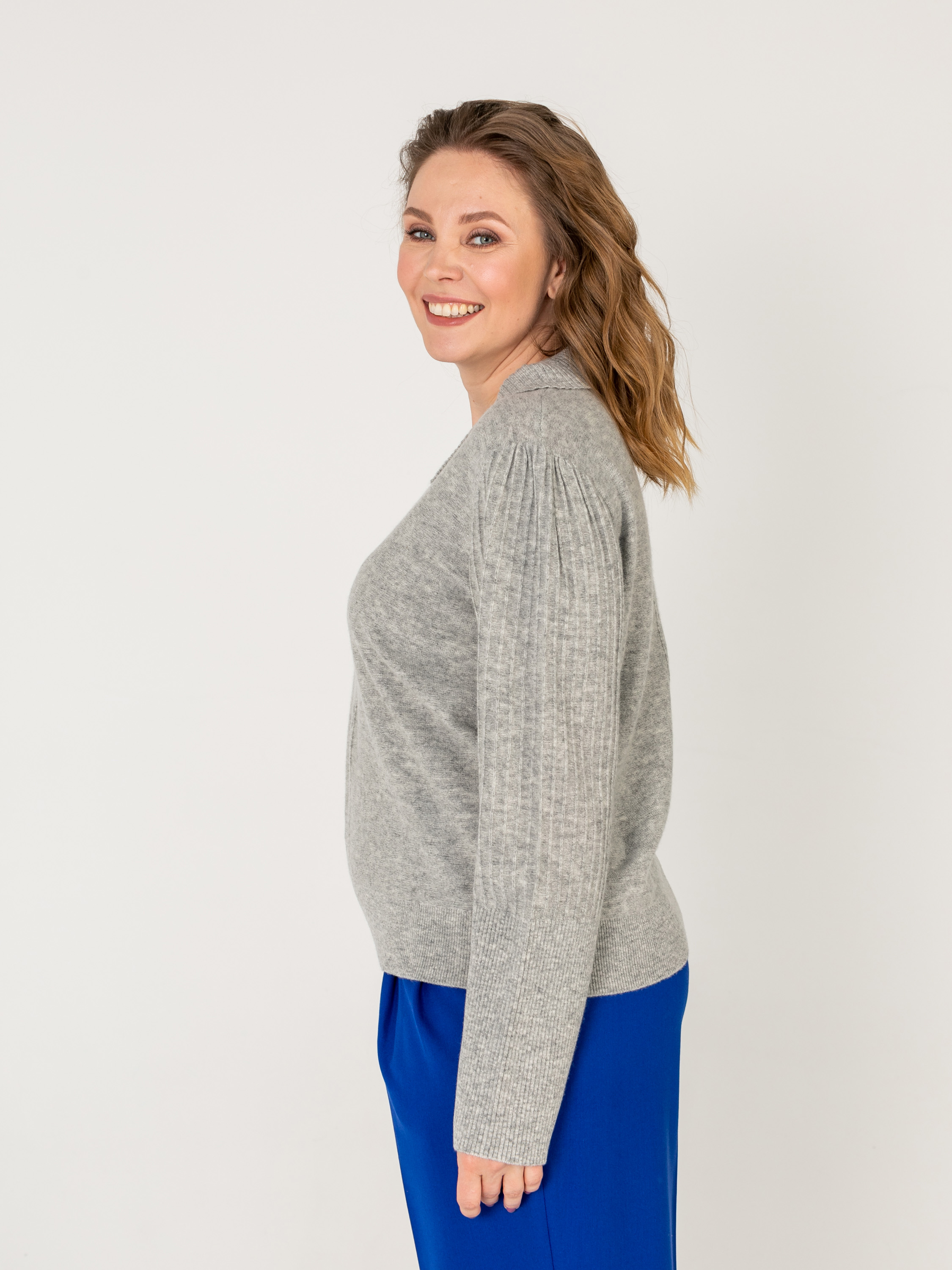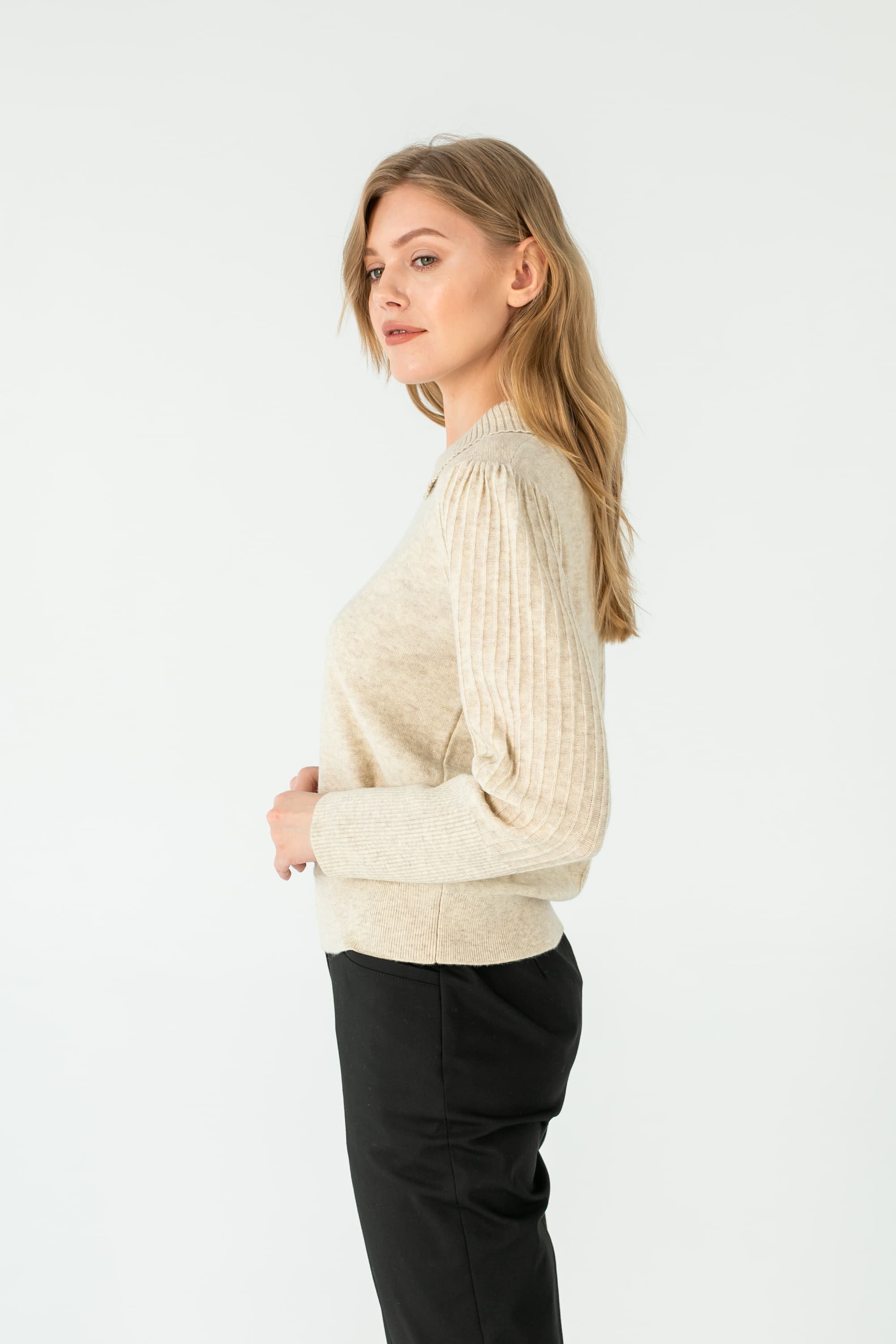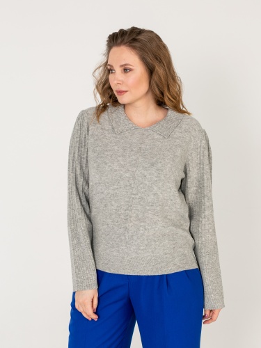 На сайте указаны российские размеры. Крой: джемпер прямого силуэта с длинным рукавом. Шерсть в составе дарит непревзойденное тепло, материал приятен телу, не колется и не натирает. Универсальная модель отличается простым, но удобным кроем и идеальной посадкой на женщин разного роста и комплекций. Представлен в двух сдержанных оттенках – сером и бежевом. Отделка: аккуратный треугольный воротничок добавляет истинного благородства и аристократизма этому джемперу. Фактурная полоса по центру изделия создает дополнительную вертикаль, которая гармонирует с рубчиком на рукавах. Подберите идеальный низ в разделах юбок и брюк на сайте Stern.
