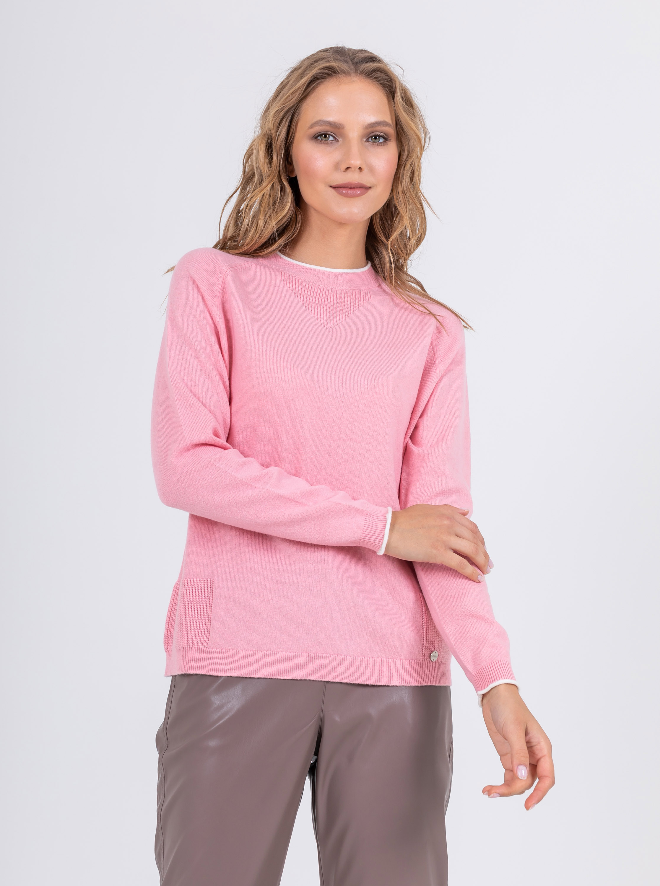 На сайте указаны российские размеры. Ткань: выполнен из смесовой ткани с добавлением шерсти (20%) и кашемира (5%) для непревзойденного тепла и уюта, а также вискозы (27%) и нейлона (48%) для эластичности, гладкости и сохранения свойств при стирке. Крой: джемпер средней длины прямого силуэта с круглым воротом. Базовая гладкая модель с длинным рукавом дарит тепло и уют, прекрасно садится на разные фигуры и гарантирует комфорт при движении. Отделка резинкой на манжетах и низе изделия обеспечивает прилегание к телу. Отделка: контрастная отделка рукавов и ворота делает образ современным и запоминающимся. Декоративные фактурные фрагменты в зоне ворота и по бокам смотрятся уместно и изысканно. Подберите идеальный низ в разделах юбок и брюк на сайте Stern.