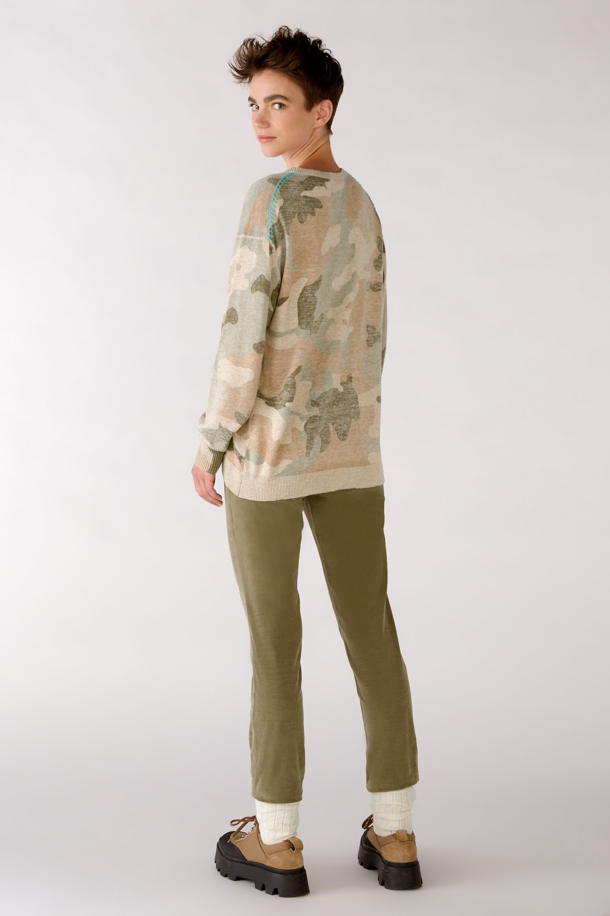 На сайте указаны российские размеры. Пуловер прямого покроя. Стразы, сужающиеся от плеча к талии. Декоративная строчка на плече яркого цвета. Ребристый низ, рукава и воротник. Рост модели 178 см.