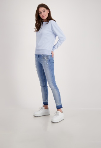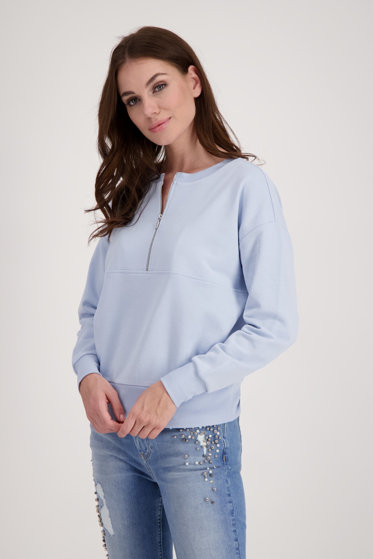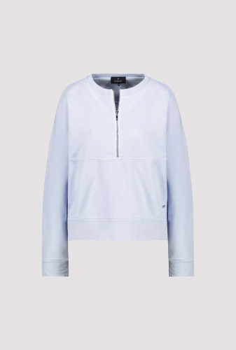 На сайте указаны российские размеры. Толстовка Uni с круглым вырезом и молнией. Застежка-молния на ребристой круглой горловине придает высококачественной модели с удобством ношения модный штрих и позволяет ей сиять! Прямая форма с широкими манжетами в рубчик и объемными плечами, а также эффектный горизонтальный разделительный шов спереди привлекают внимание. Модель ростом 179 см.