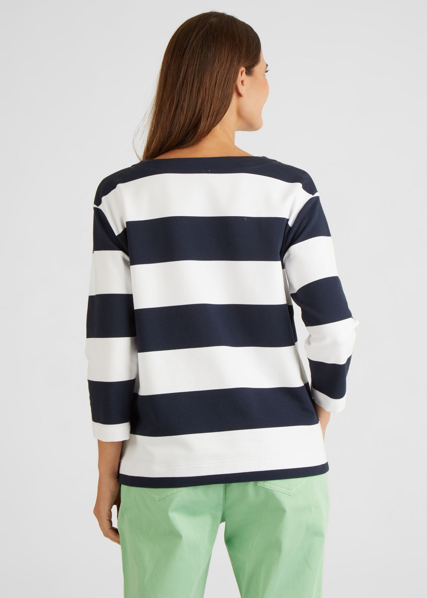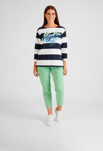 На сайте указаны российские размеры. Толстовка с круглым вырезом со стильной надписью может стать фаворитом. Прямой крой из мягкого трикотажно-хлопкового трикотажа приятно свободен в носке. Толстовка с полосатым рисунком и эффектной надписью создает стильный образ. Длина по спинке от плеча для размера 46: 64 см. Рост модели 176 см.