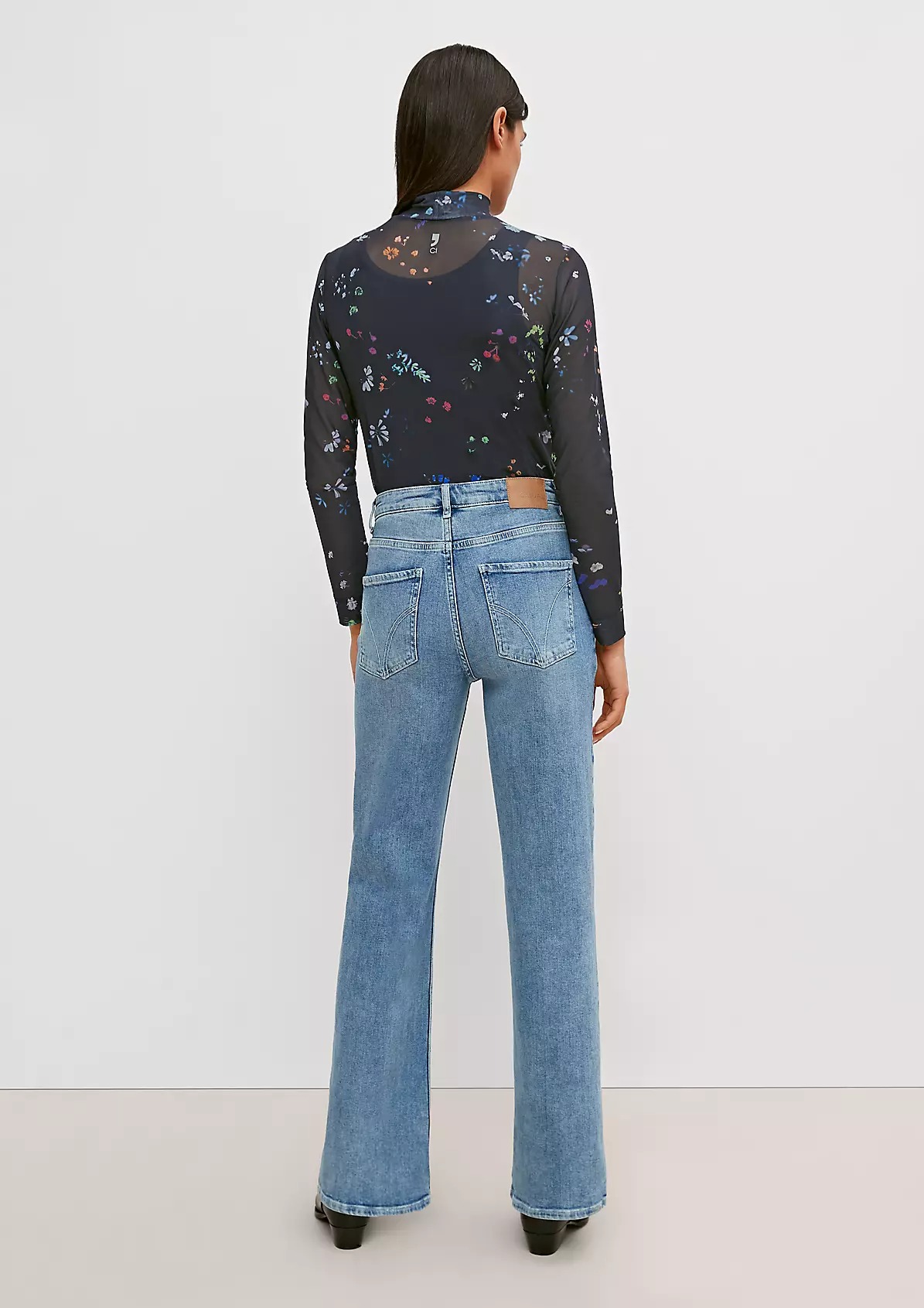 На сайте указаны российские размеры. Сетчатый топ со сплошным принтом. Длина спины 58 см в размере 42. Рост модели 177 см.