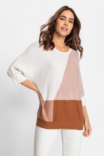 Джемпер с асимметричным современным рисунком и вырезом из драгоценных камней. Высокое содержание хлопка для комфорта и воздухопроницаемости. Модель свободного кроя с рукавами «летучая мышь».