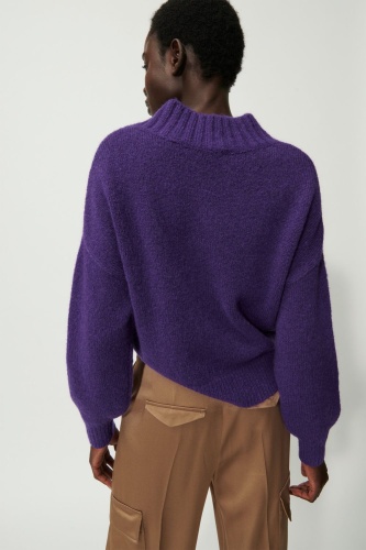 Легкий пуловер с V-образным вырезом из высококачественной итальянской полушерстяной ткани. Заниженные плечи помогают создать повседневный образ.