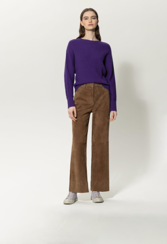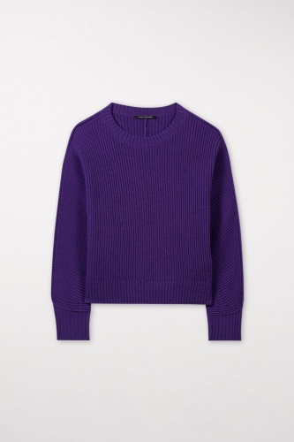 Повседневный пуловер из мягкой смесовой шерсти. Рукава «летучая мышь», строгий крой и отделка в рубчик придают изделию изысканный вид.