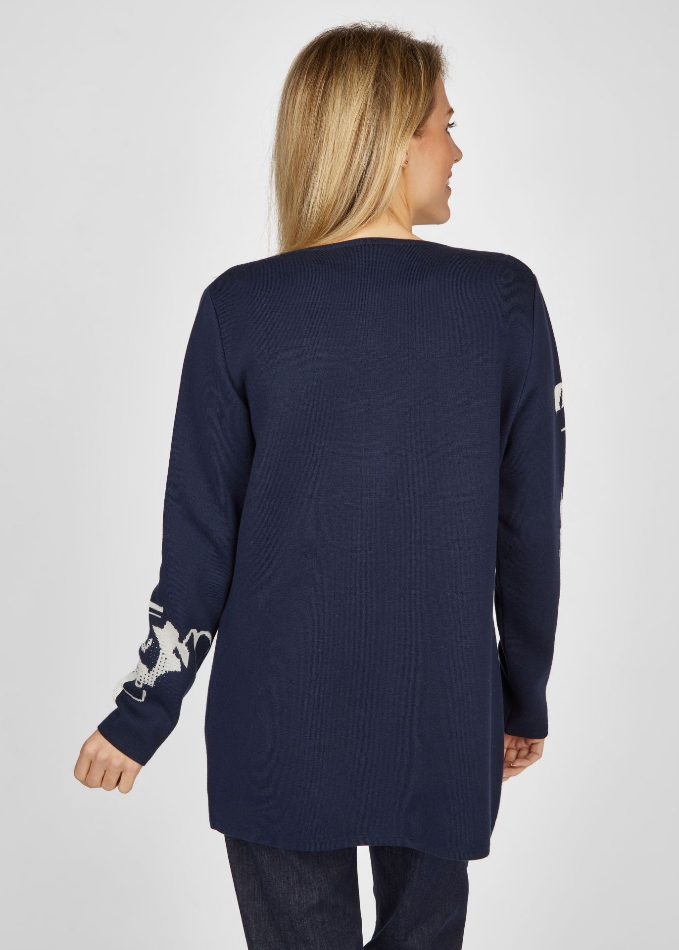 Кардиган без застежек впечатляет своим неподвластным времени дизайном и высококачественным материалом, обеспечивающим удобную посадку. Сверкающие стразы придают куртке утонченный, но гламурный вид и делают ее идеальным компаньоном для особых случаев. Кардиган с накладными карманами и длинными рукавами не только стильный, но и практичный.