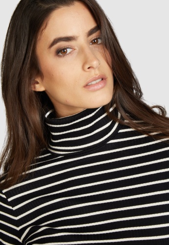 Полосатая водолазка — универсальная базовая вещь для любого гардероба. Изготовленное из эластичного хлопкового трикотажа в рубчик, оно обеспечивает удобство ношения и идеальную посадку. Водолазка придает элегантный вид, а длинные рукава обеспечивают дополнительное тепло. Эта полосатая рубашка, которую можно носить отдельно или под джемпером или блейзером, — вневременная классика, которая подойдет к любому наряду.