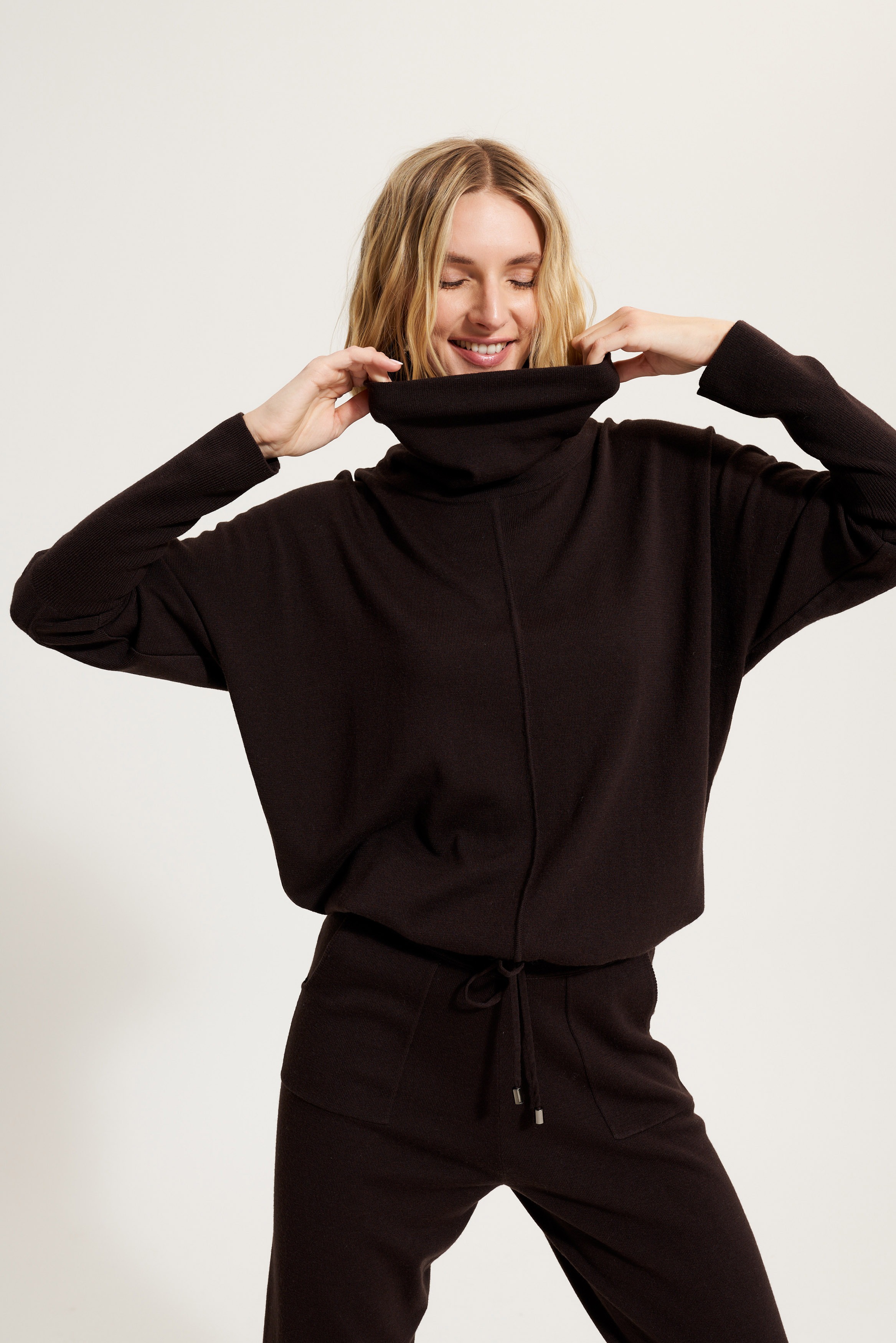 Джемпер свободного кроя с двойным воротником. Длина: 62 см.
