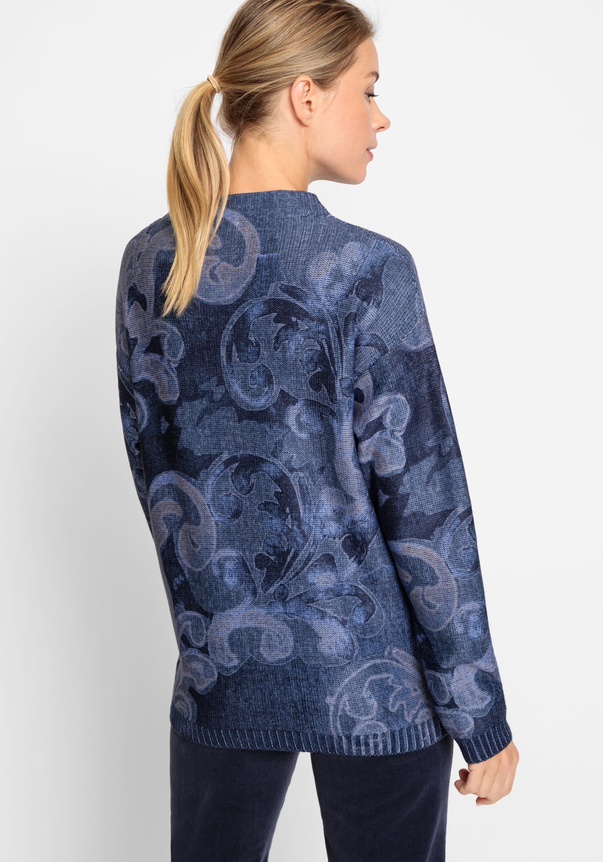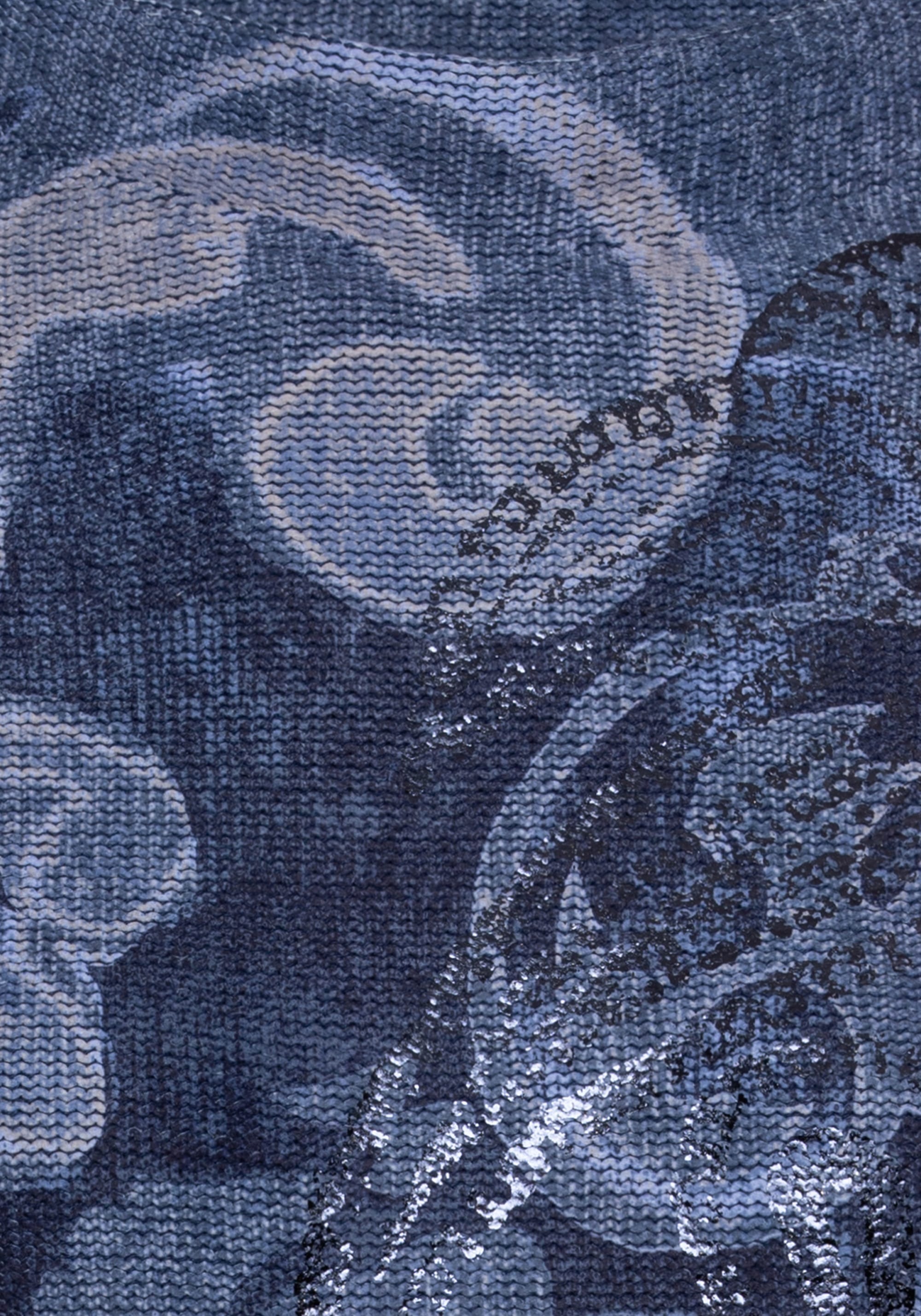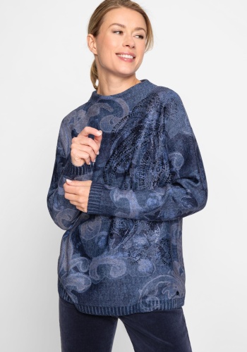 Свитер свободного кроя эффектен благодаря уникальному дизайну по всей поверхности и красивым синим оттенком. Накладной серебристый металлик добавляет достаточное количество хлопка для комфорта и воздухопроницаемости. Модель выполнена в современном крое, который свободно и непринужденно облегает тело.