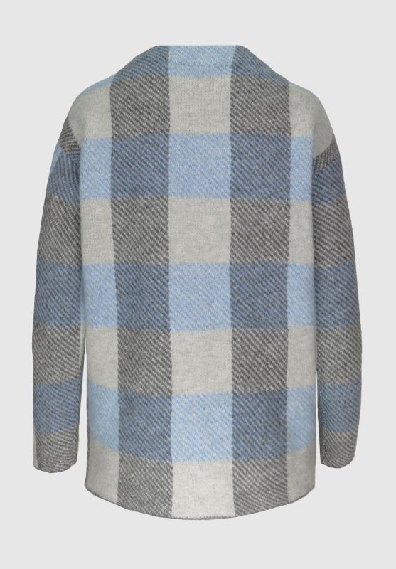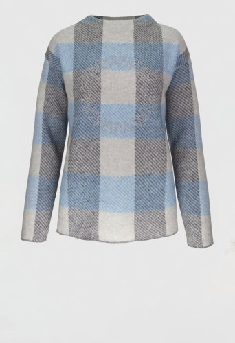 Вязаный свитер с оригинальным рисунком и длинными рукавами модных цветов. Изготовлен из мягкого плотного трикотажа с добавлением шерсти. Круглый вырез горловины и слегка удлиненная спинка. Прямой и повседневный крой. Длина модели в 44 размере - 62 см.