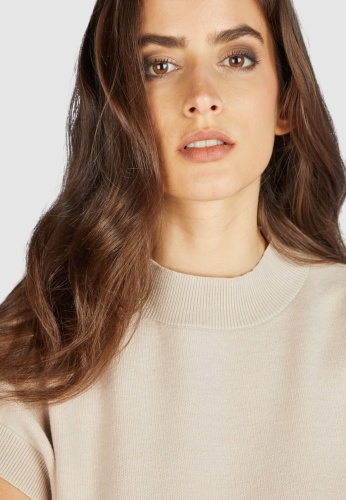 Прямой джемпер с рукавами летучая мышь. Воротник удлинен, образуя водолазку, а ребристая отделка подчеркивает свободный силуэт. Мягкая смесь хлопка.