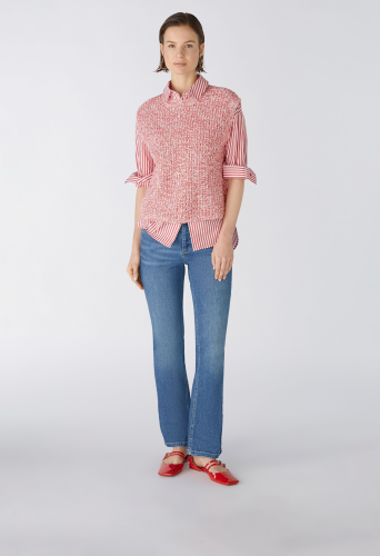 Мягкая резинка из смесового хлопка, связанная спицами из смеси пряжи Oui Iconic. Прямой крой, немного укороченный. Круглый вырез горловины с ребристой отделкой. Прямой низ, без манжет, идеально подходит для многослойной одежды. Oui Iconic смесь пряжи: разные виды пряжи, каждая разного цвета и качества, объединены по дизайну для каждого цветового варианта, в результате чего получается мягкая смесь хлопка с большой глубиной и особым эффектом. Длина для размера 42: 52 см.