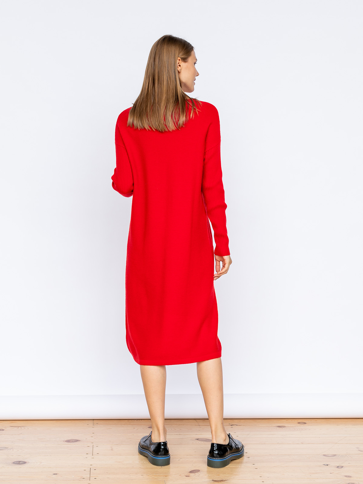 Однотонная трикотажная туника - тренд сезона! Актуальная длина миди и свободный крой идеально подходят под любой тип фигуры. Спереди изделия идет декоративный шов. Вырез горловины лодочка выгодно подчеркивает линию шеи. Спущенная линия плеч делает образ расслабленным. Два практичных накладных кармана спереди создают динамику в фактуре изделия.