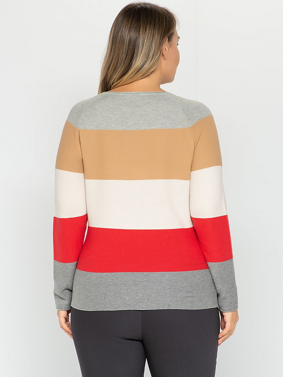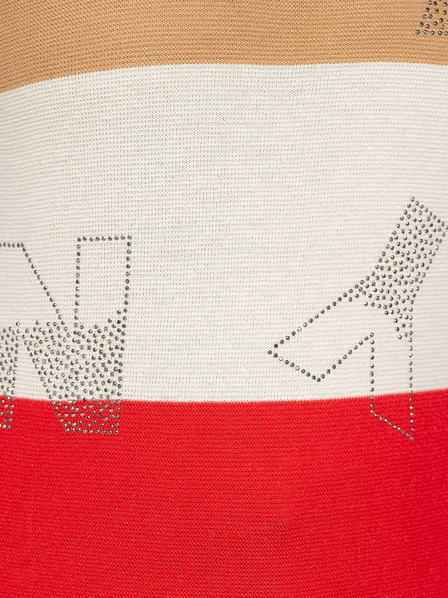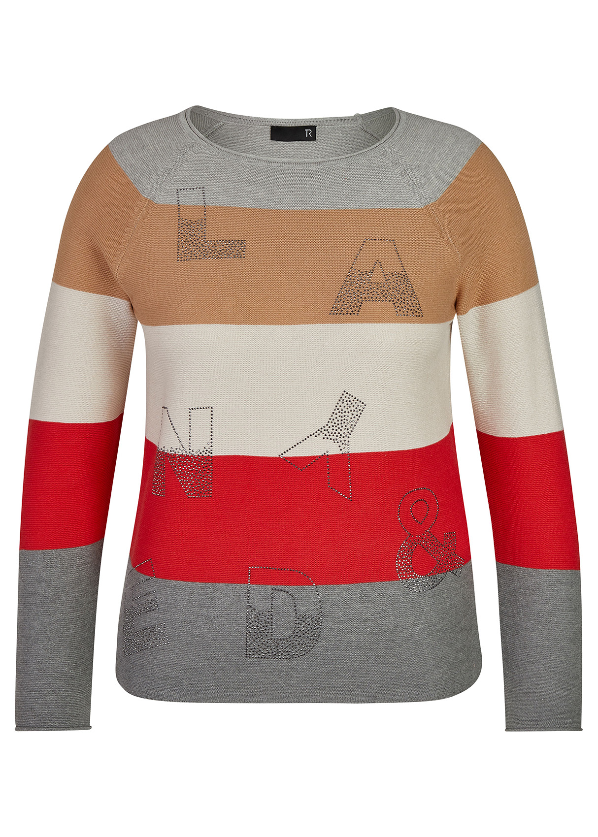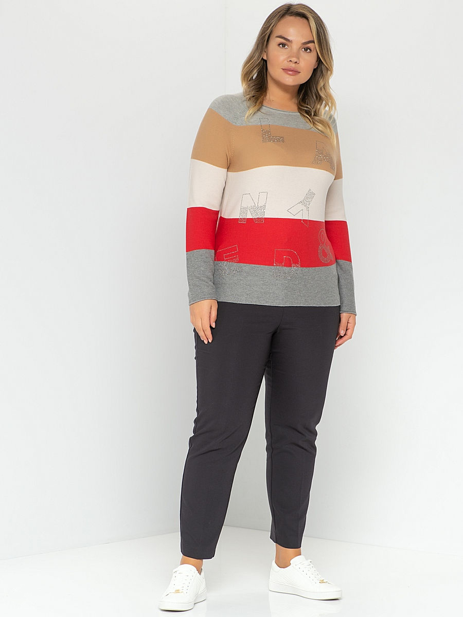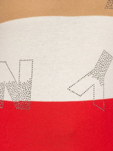 Стильный джемпер обращает на себя внимание благодаря контрастной расцветке и декору стразами. Другие детали дизайна - прямой покрой, круглый вырез горловины, рукава реглан полной длины. Материал из хлопковой смеси приятен к телу и прост в уходе.