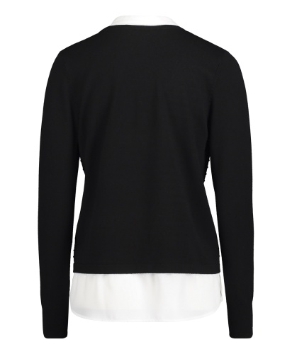 Джемпер с имитацией модели-двойки смотрится очень женственно и элегантно. Слегка прилегающий силуэт, V-образный вырез, длинные рукава. Материал из вискозной смеси приятен к телу и обеспечивает комфорт. В сочетании с брюками этот джемпер создает сдержанный образ в стиле смарт-кэжуал.