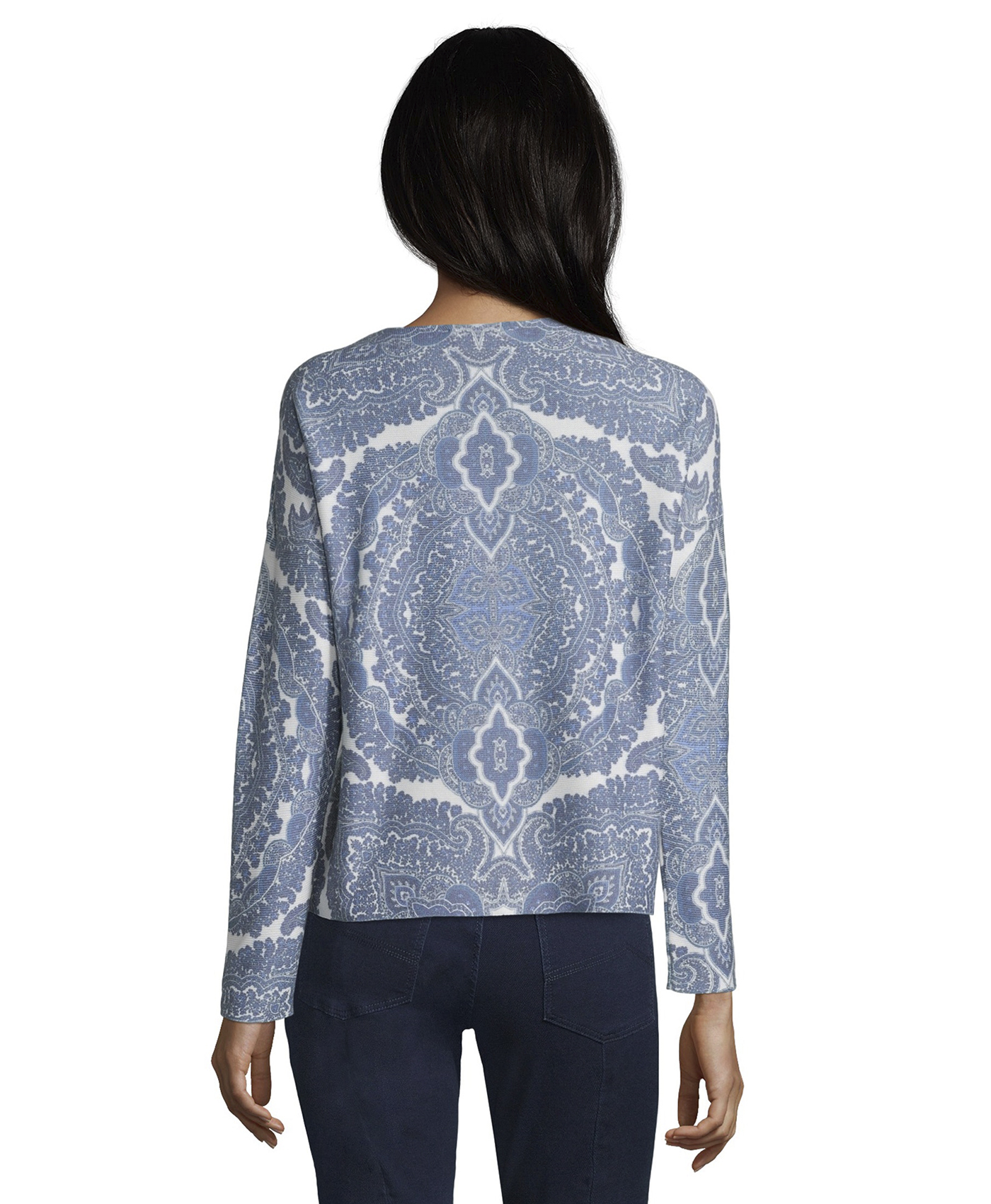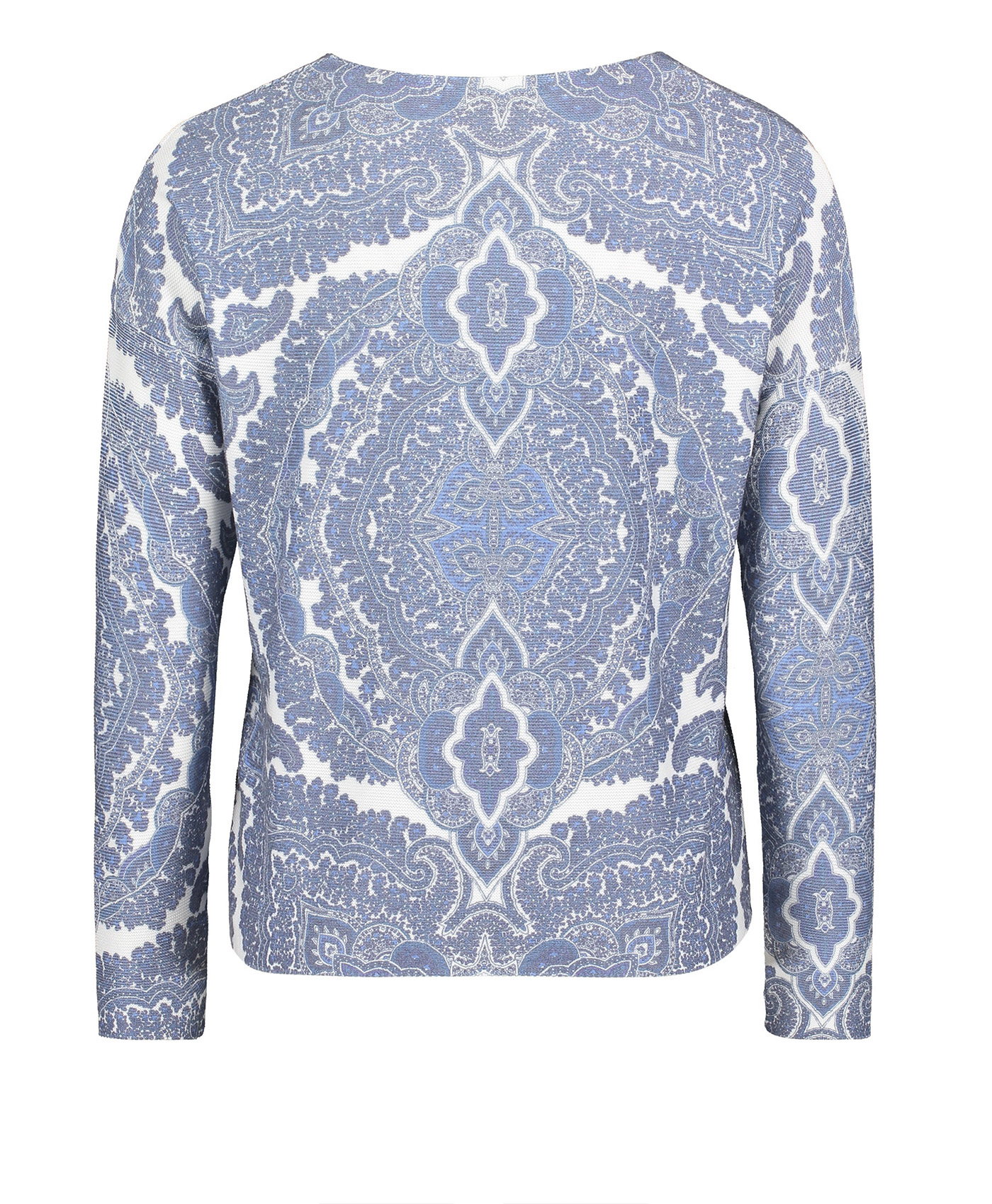 Этот женственный джемпер придаст изюминку в любой образ! Прямой покрой, V-образный вырез, длинные рукава. Модный принт с этническими мотивами. Джемпер отлично смотрится как с брюками, так и с юбкой.
