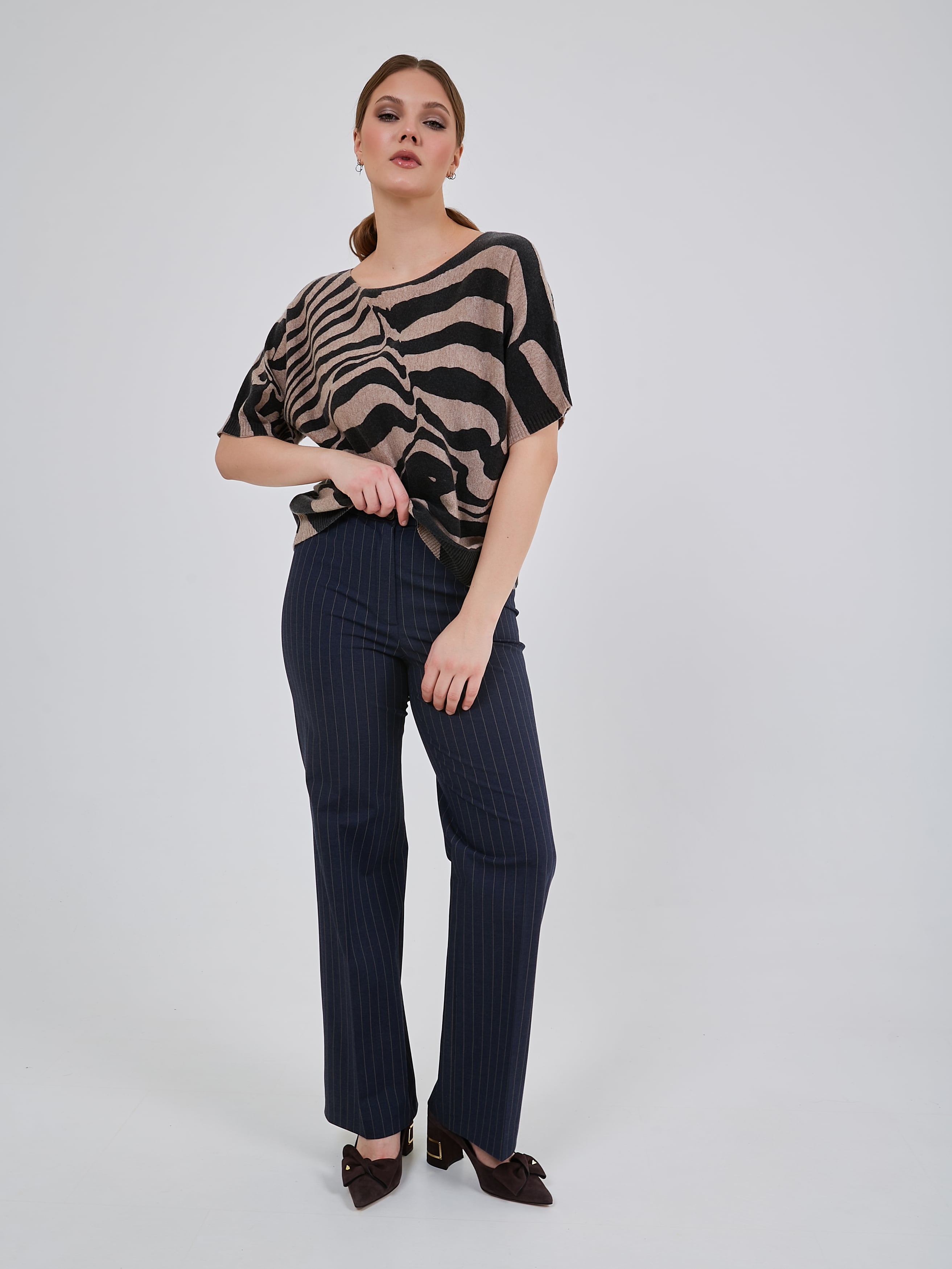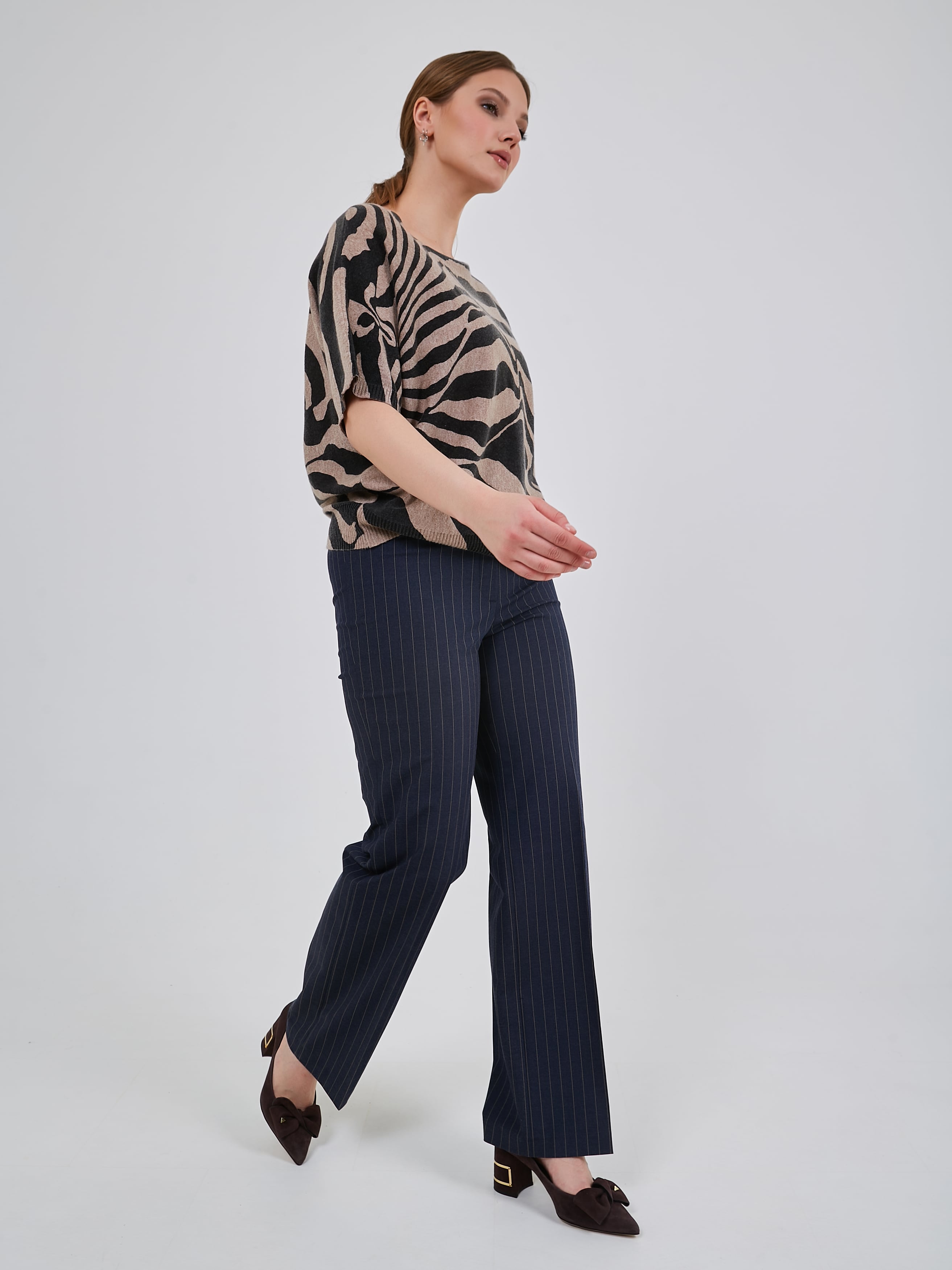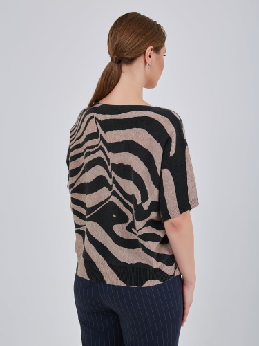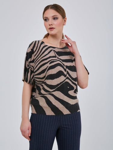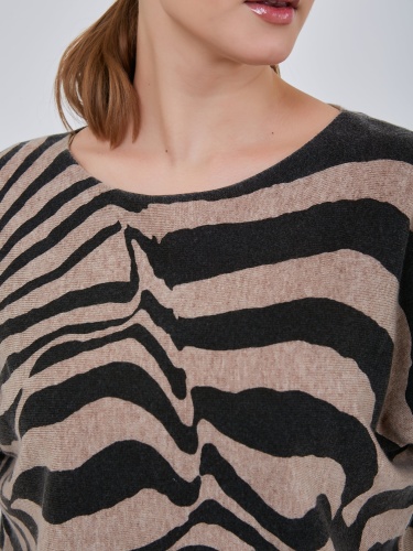 Джемпер с анималистичным принтоми спущенной линией плеча. Рукав выше локтя с узкой эластичной манжетой. Коллекция Осень-Зима 2024-2025. Капсула "Крадущийся тигр, затаившийся дракон".