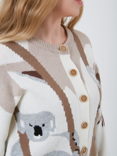 Нежный кардиган из шерсти и кашемира с анималистичным принтом в виде милых коал. Коллекция Осень-Зима 2024-2025. Капсула "Крадущийся тигр, затаившийся дракон".