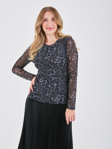 Приталенная блузка с леопардовым принтом. Полупрозрачная фактура на рукавах придаёт лёгкость и изящество. Коллекция Осень-Зима 2024-2025. Капсула "Гостья из будущего".