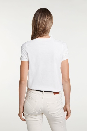 Футболка прямого покроя. Круглый вырез горловины, короткие рукава. Контрастный принт обращает на себя внимание, а пайетки привносят нотку гламура. Хлопковый материал приятен к телу и обеспечивает комфорт. Эта футболка - отличный вариант верха для множества стильных образов.