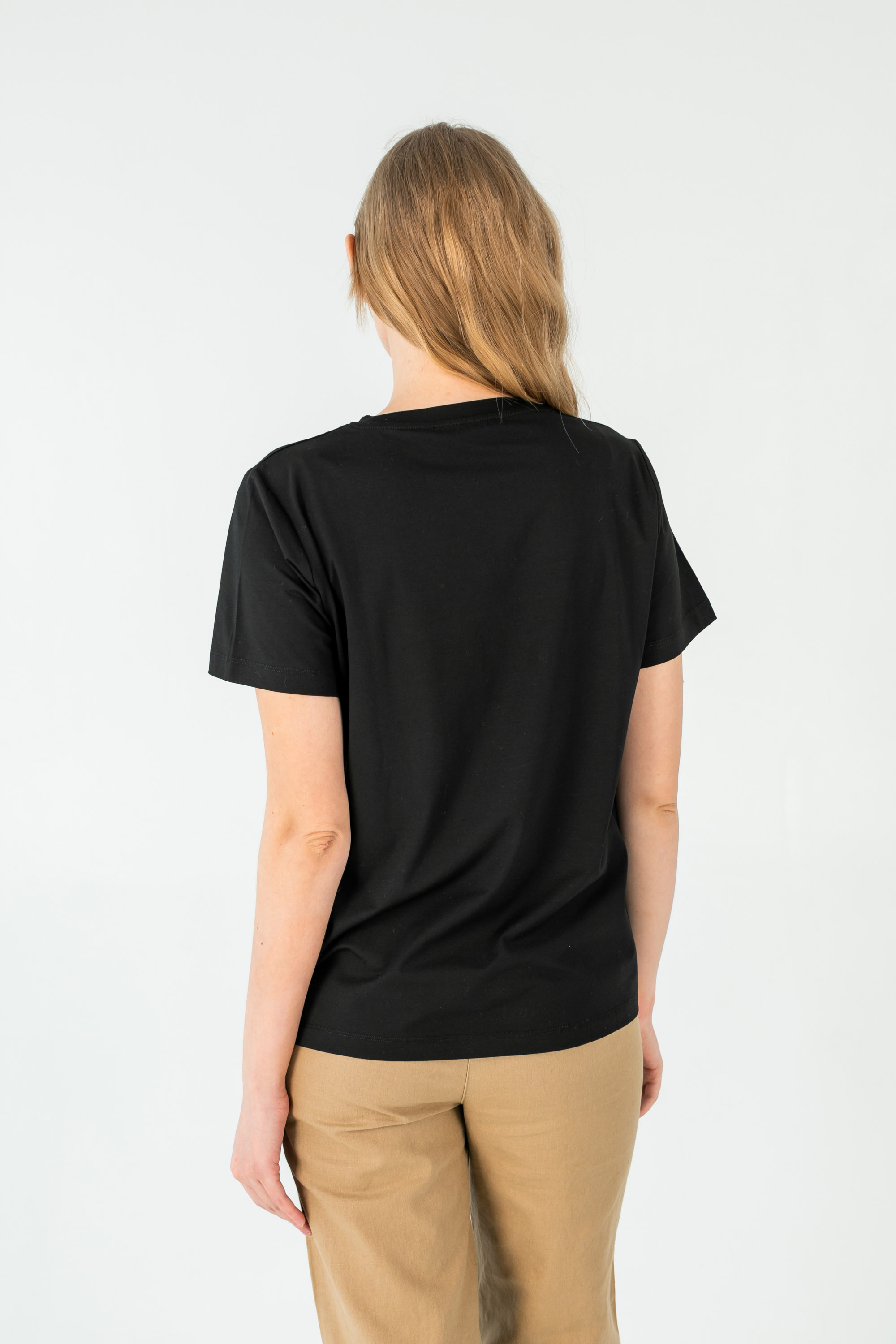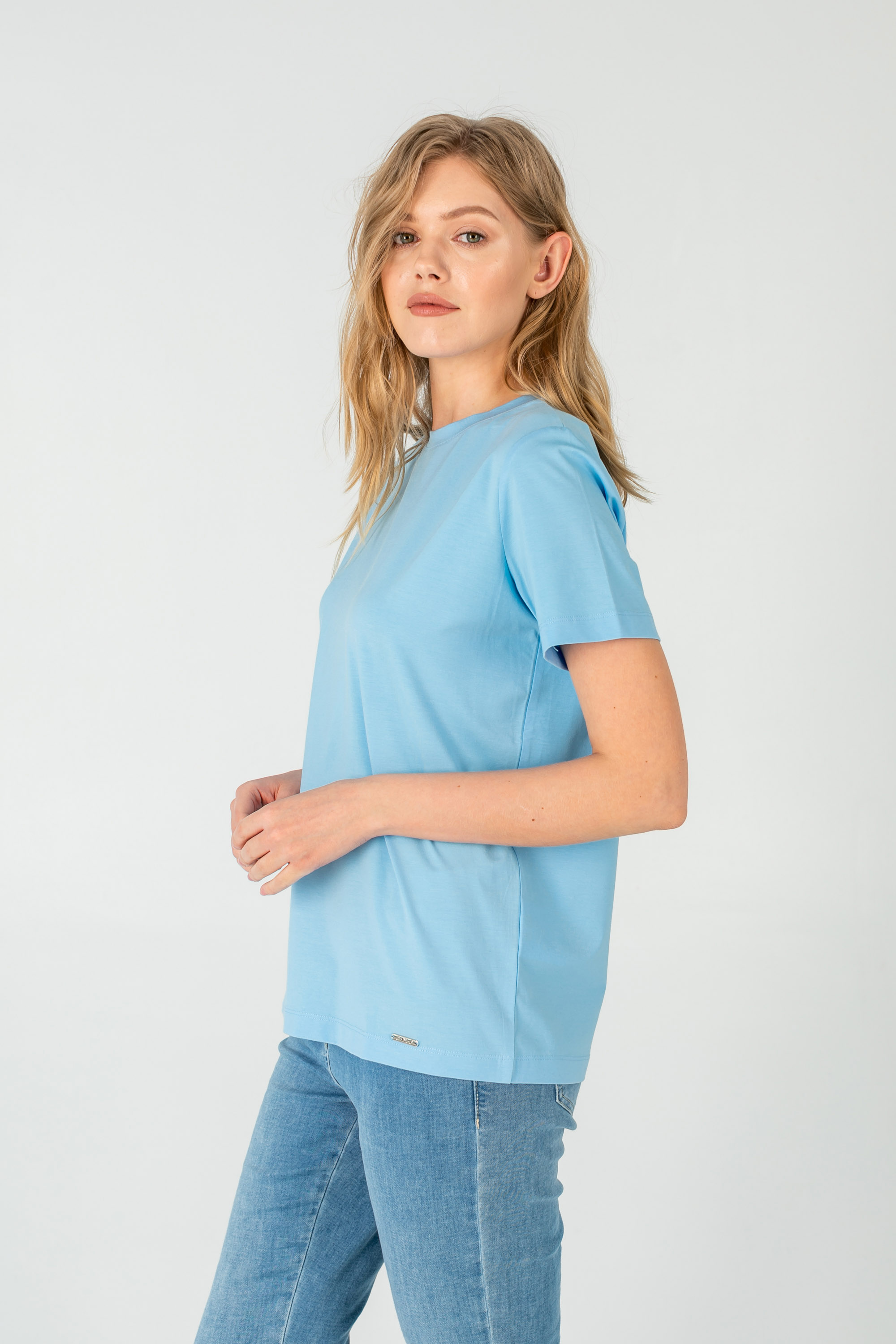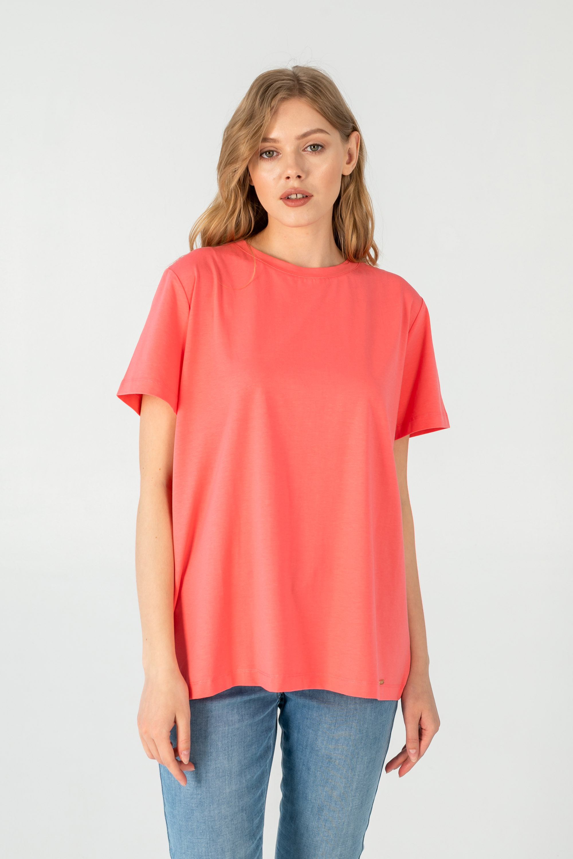 На сайте указаны российские размеры. Ткань: материал из смеси хлопка (49%), вискозы (46%) и эластана (5%) Крой: однотонная базовая футболка прямого силуэта средней длины. Имеет круглый вырез и свободный короткий рукав-реглан. Подходит под разные типы фигур. Отделка: украшена фирменным шильдиком с надписью Stern. Идеальная базовая футболка, которая станет самостоятельным элементом или первым слоем для жакетов, рубашек, джемперов и кардиганов.