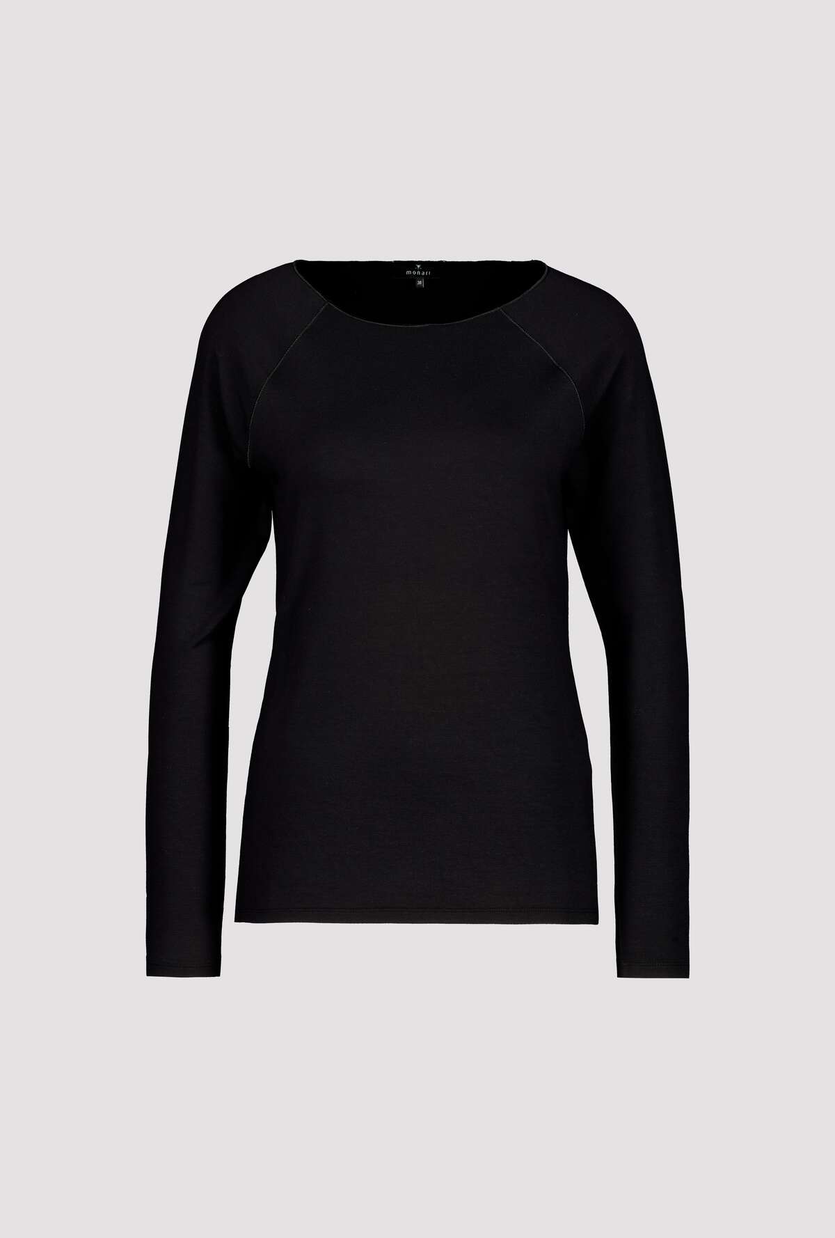 На сайте указаны российские размеры. Базовая футболка с длинными рукавами и круглым вырезом. Универсальная комбинируемая базовая рубашка монари с длинными рукавами. Прямой фасон, круглый вырез горловины и рукава реглан с блестящими оверлочными швами. Сочетание вискозы и модала, а также небольшого количества стрейча также обещает очень мягкое ощущение и высокий комфорт при ношении. Модель ростом 178 см Длина спины 44 размера составляет 64 см.