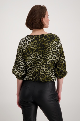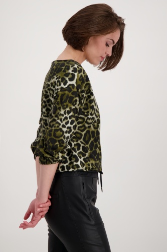 На сайте указаны российские размеры. Толстовка с анималистичным принтом, рукавами ¾ и вырезом «лодочка». Приятное качество эластичного хлопка создает великолепный женственный силуэт благодаря красивому вырезу-лодочке. Широкий рукав ¾ с резинками на концах рукавов и резинкой по низу придает изделию спортивный и стильный вид. Закрепите эту привлекающую внимание вещь и носите ее, например, с классными кожаными брюками. Модель ростом 179 см. Длина спины 44 размера составляет 60 см.
