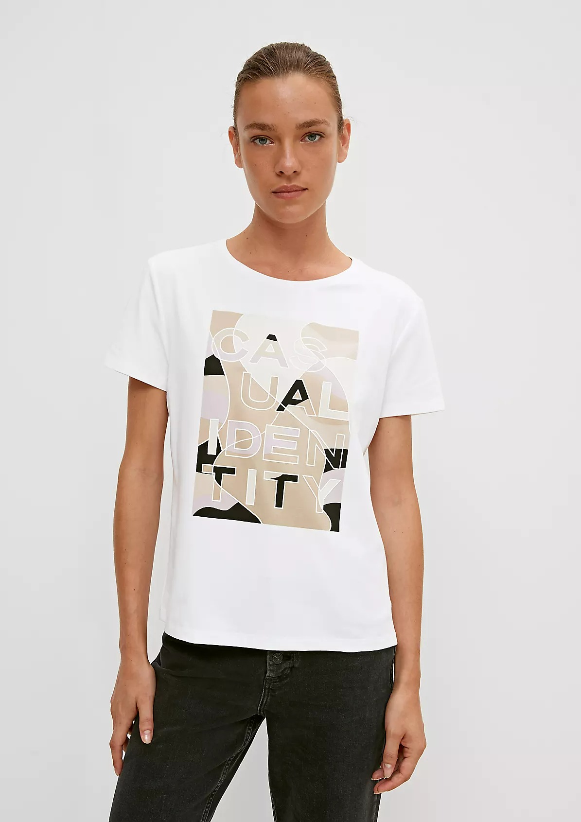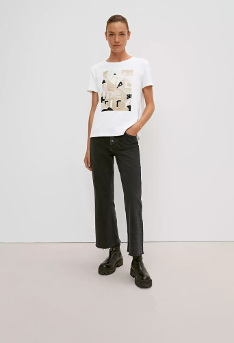 На сайте указаны российские размеры. Повседневная футболка с анималистичным прорезиненным принтом. Круглый вырез горловины с окантовкой в рубчик. Длина спинки в 42 размере - 62 см.